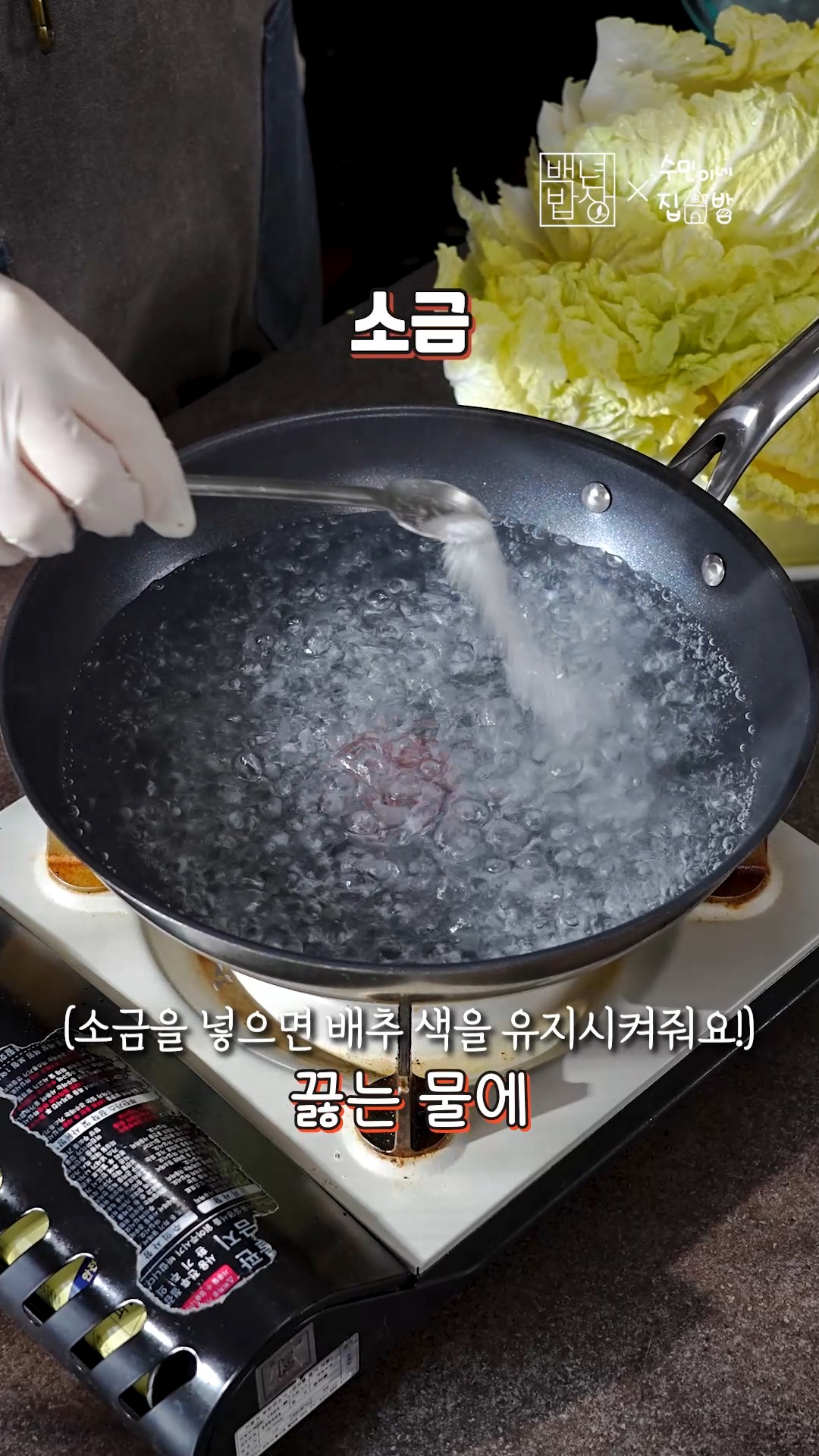 3. 끓는 물에 소금을 넣고 배추를 데쳐 얼음물에 담가 식혀주세요.