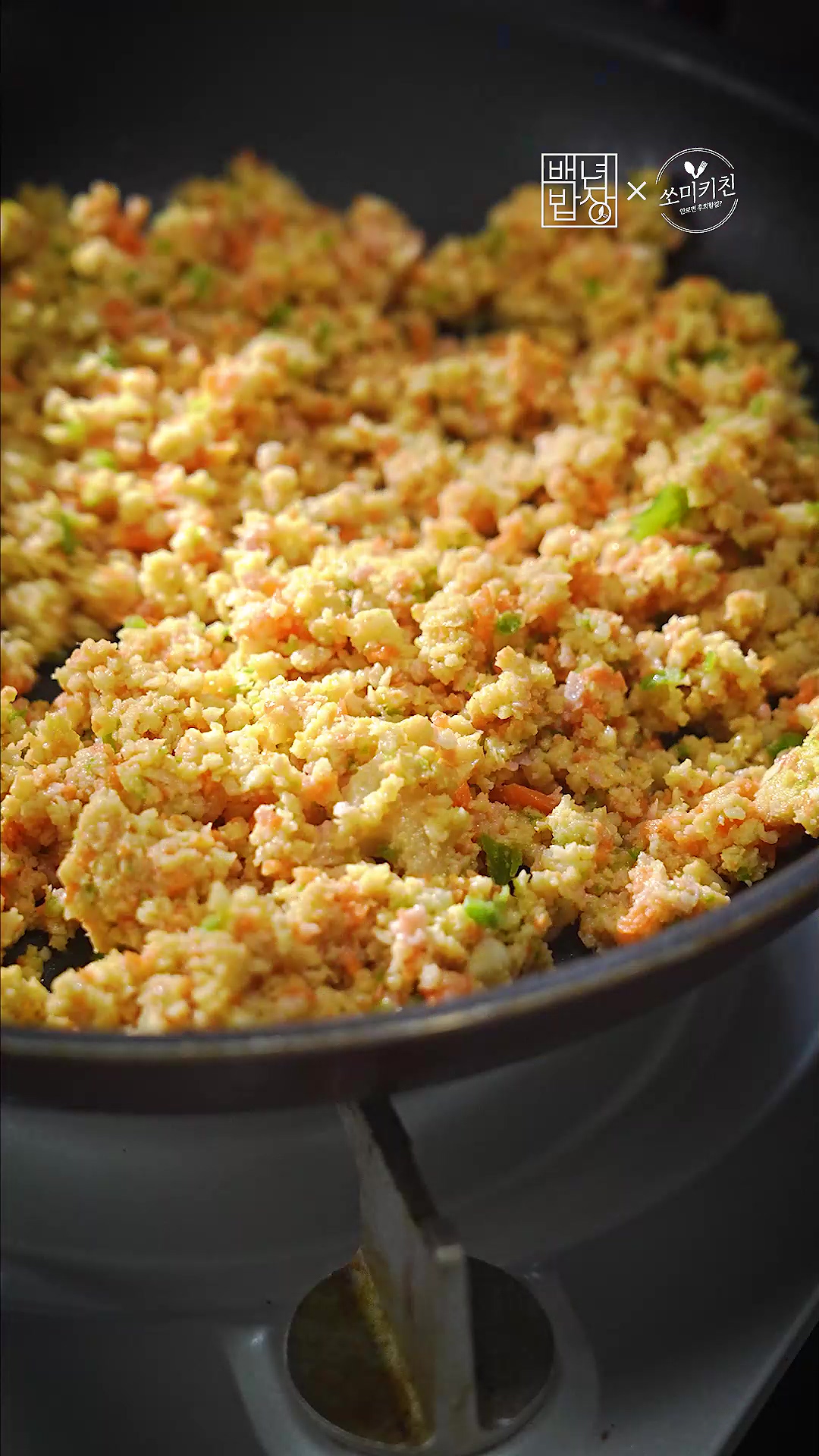 2. 팬에 기름을 둘러 다진 재료를 볶아줍니다.