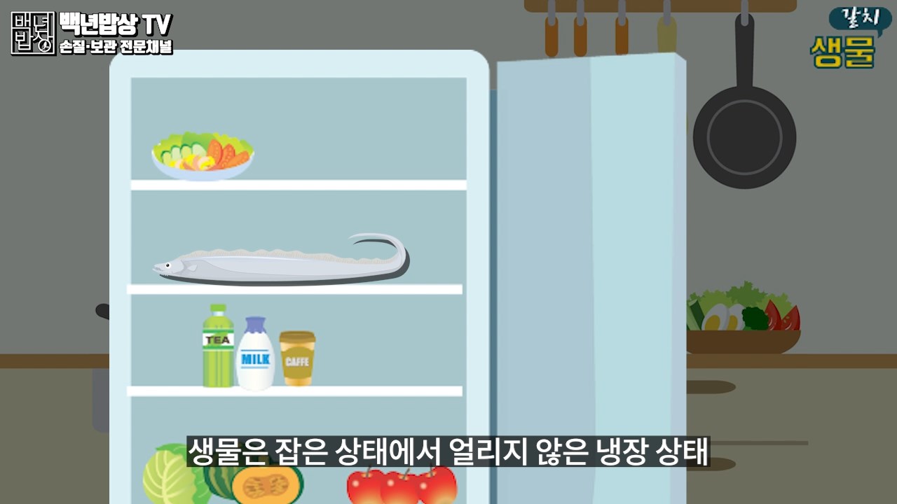 생물은 잡은 상태에서 얼리지 않은 냉장 상태, 냉동은 잡아서 바로 냉동 혹은 손질 후 냉동된 상태, 해동은 냉동된 갈치를 해동시킨 상태입니다.