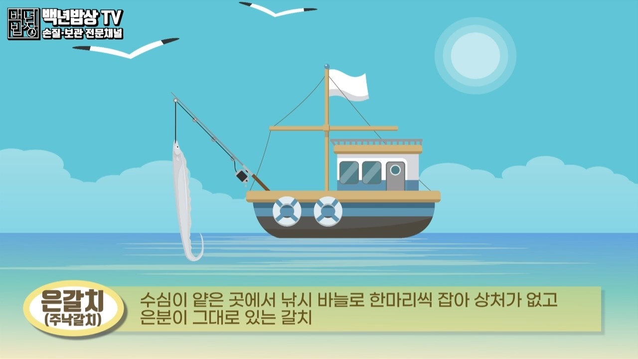은갈치(주낙갈치) : 수심 얕은 곳에서 낚시 바늘로 한 마리씩 잡아 상처가 없고, 은분이 그대로 있는 갈치