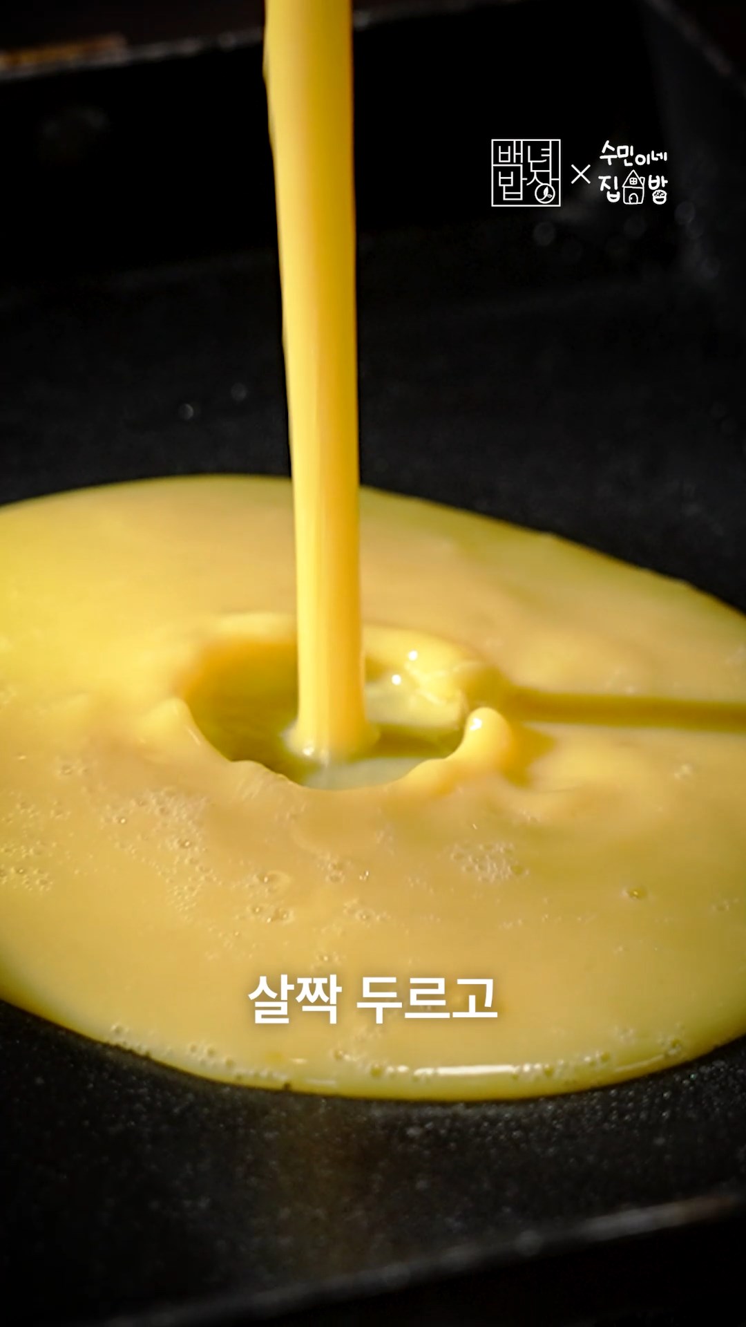 3. 밥은 밑간 해주고 사각팬에 계란물을 부어 통통하게 계란말이를 만들어 식혀주세요!