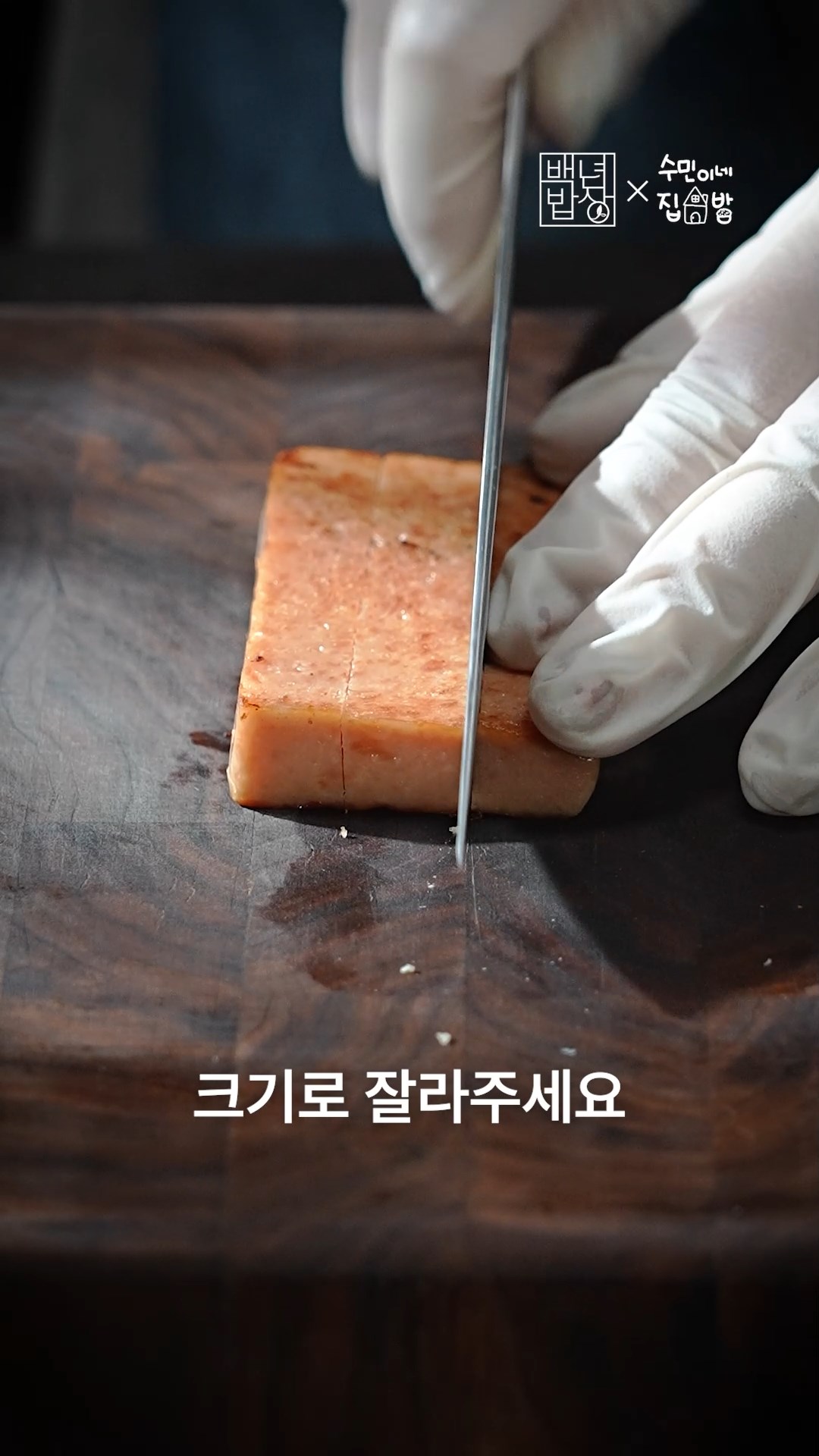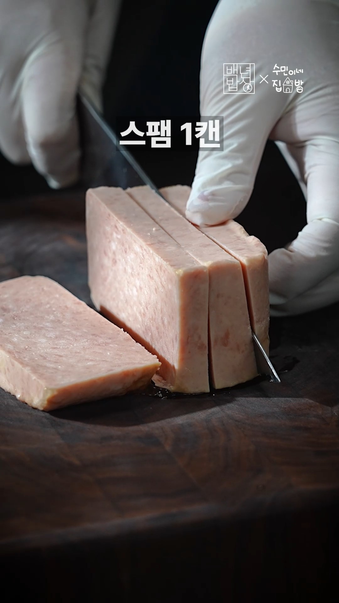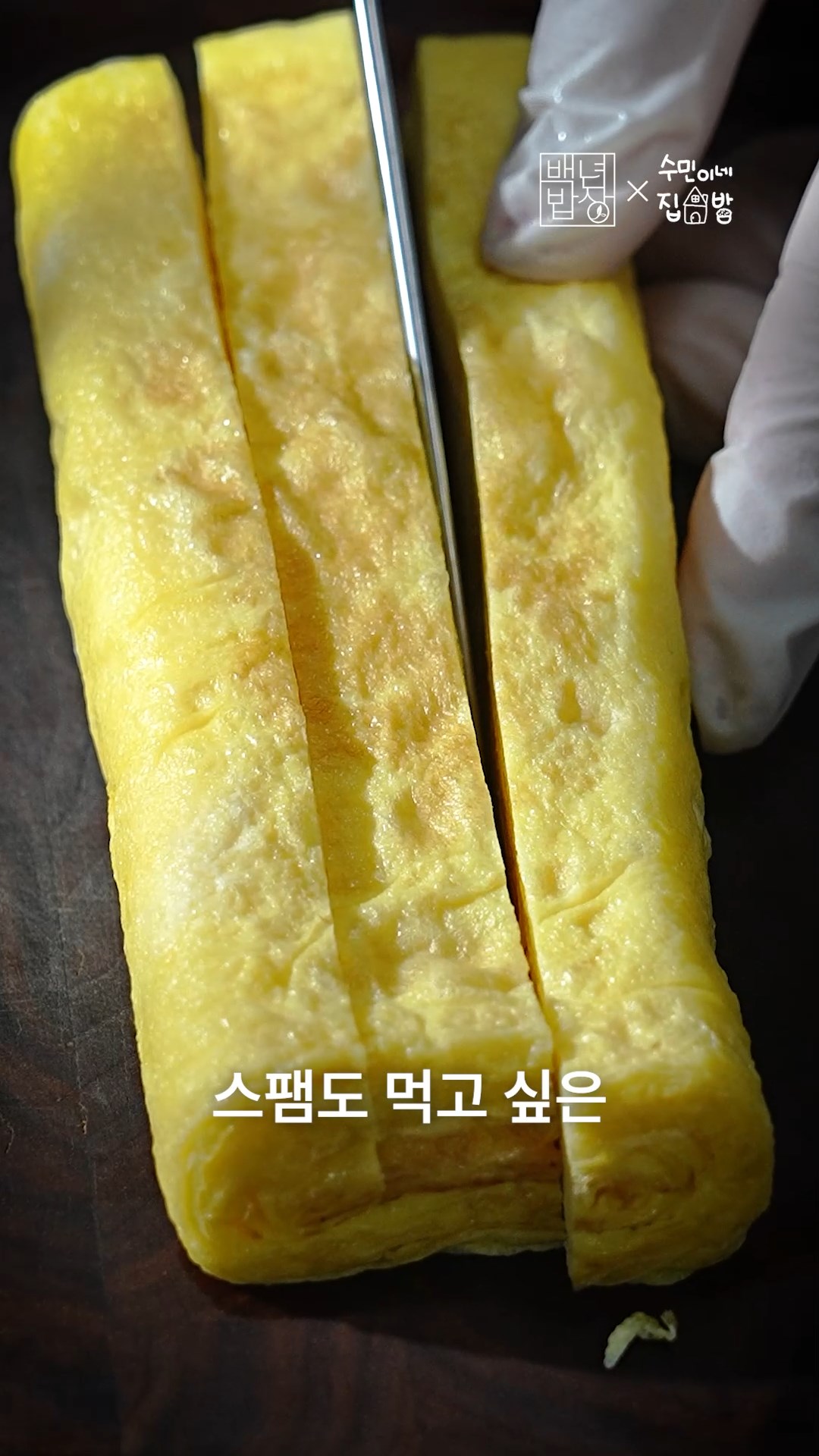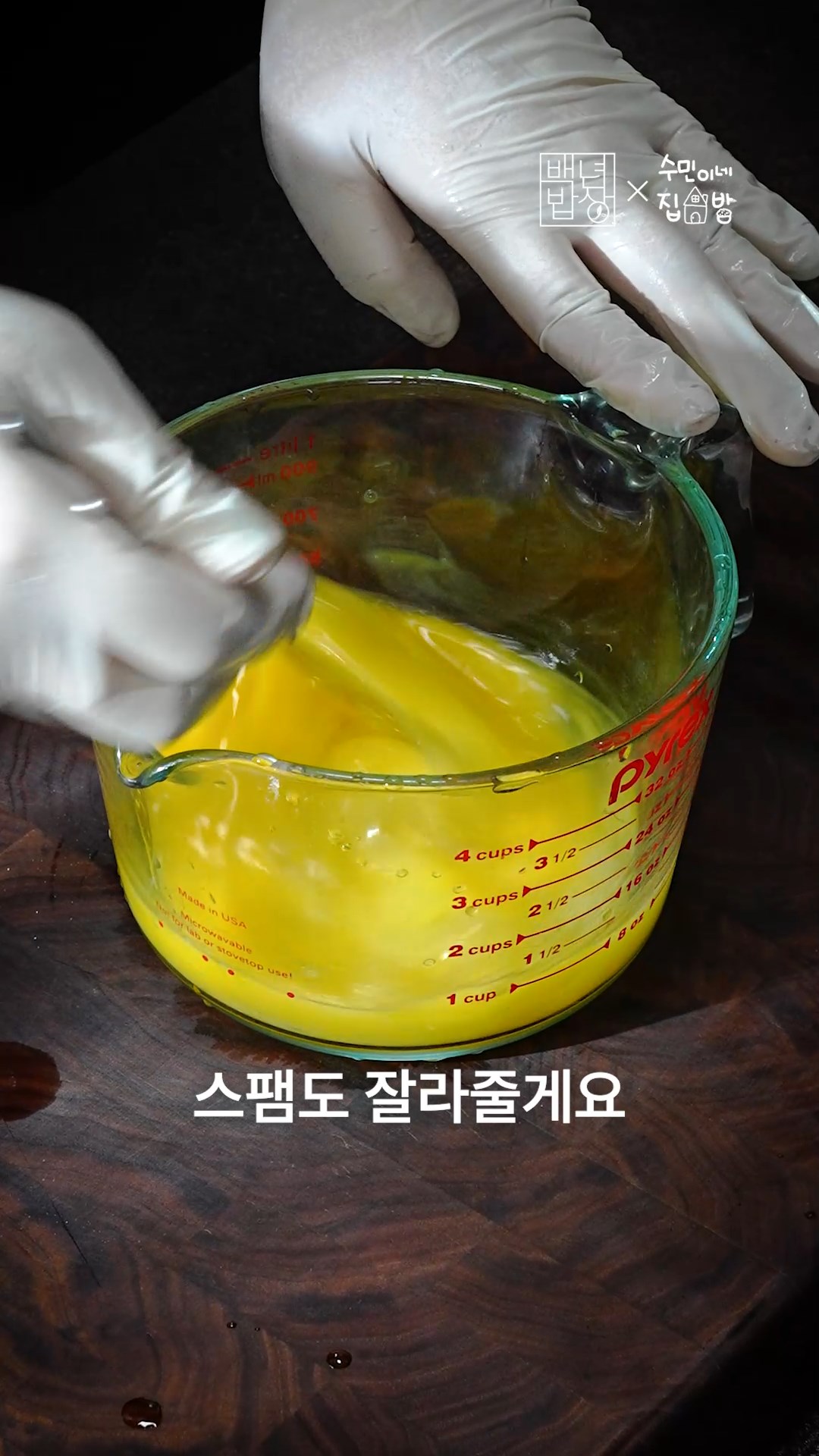 2. 계란은 소금을 넣어 풀어주고 스팸도 잘라줄게요