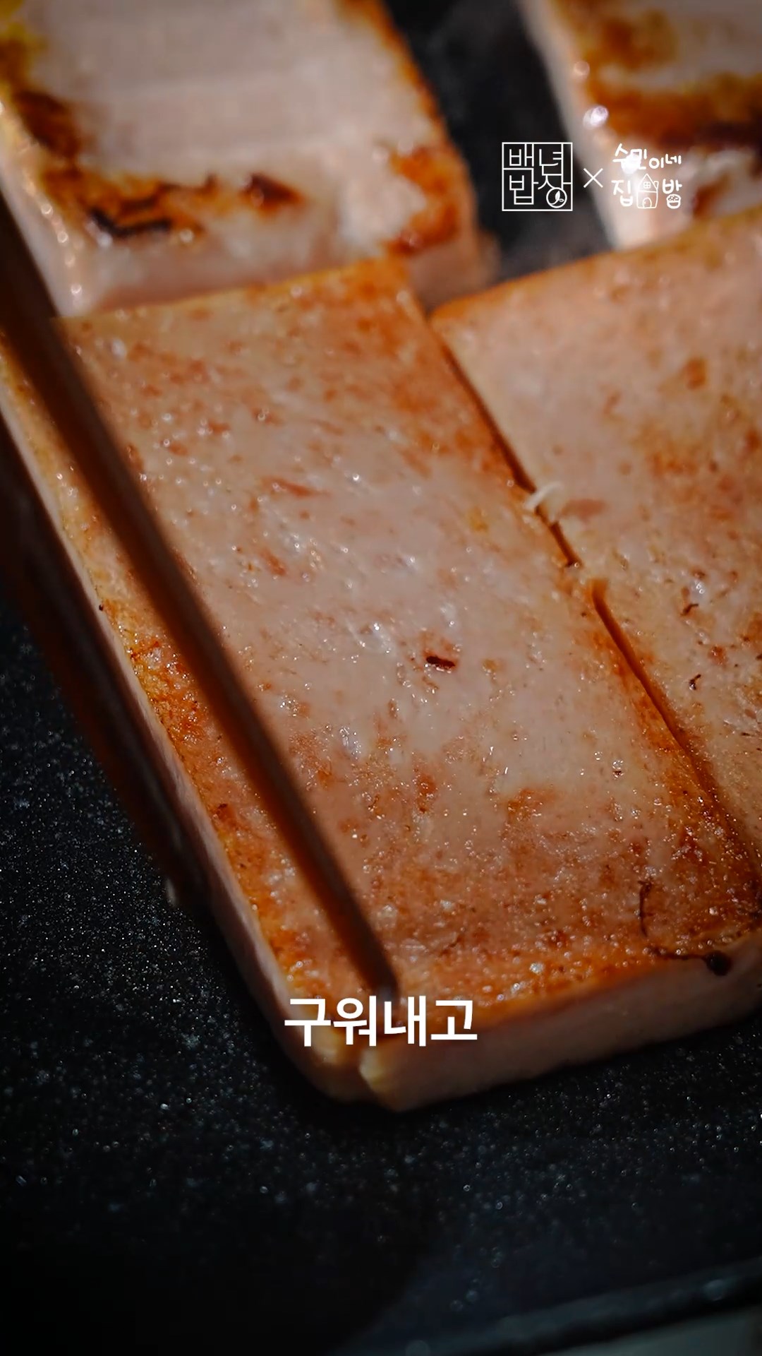 4. 스팸은 구워주고 절인 오이는 물기를 꽉 짜주세요