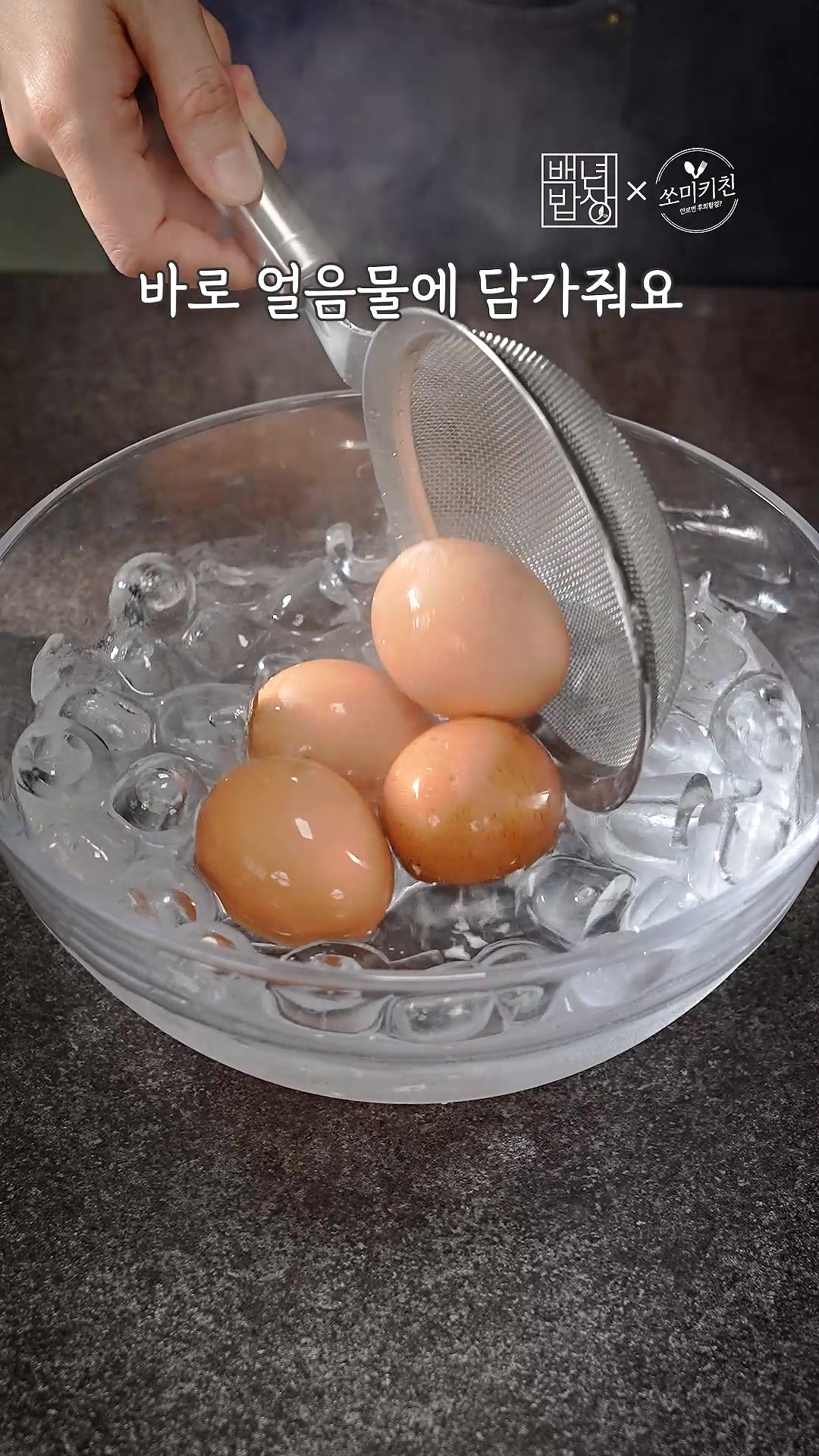 1. 끓는 물에 계란을 넣고 6분간 삶아준 후 바로 얼음물에 담가주세요.