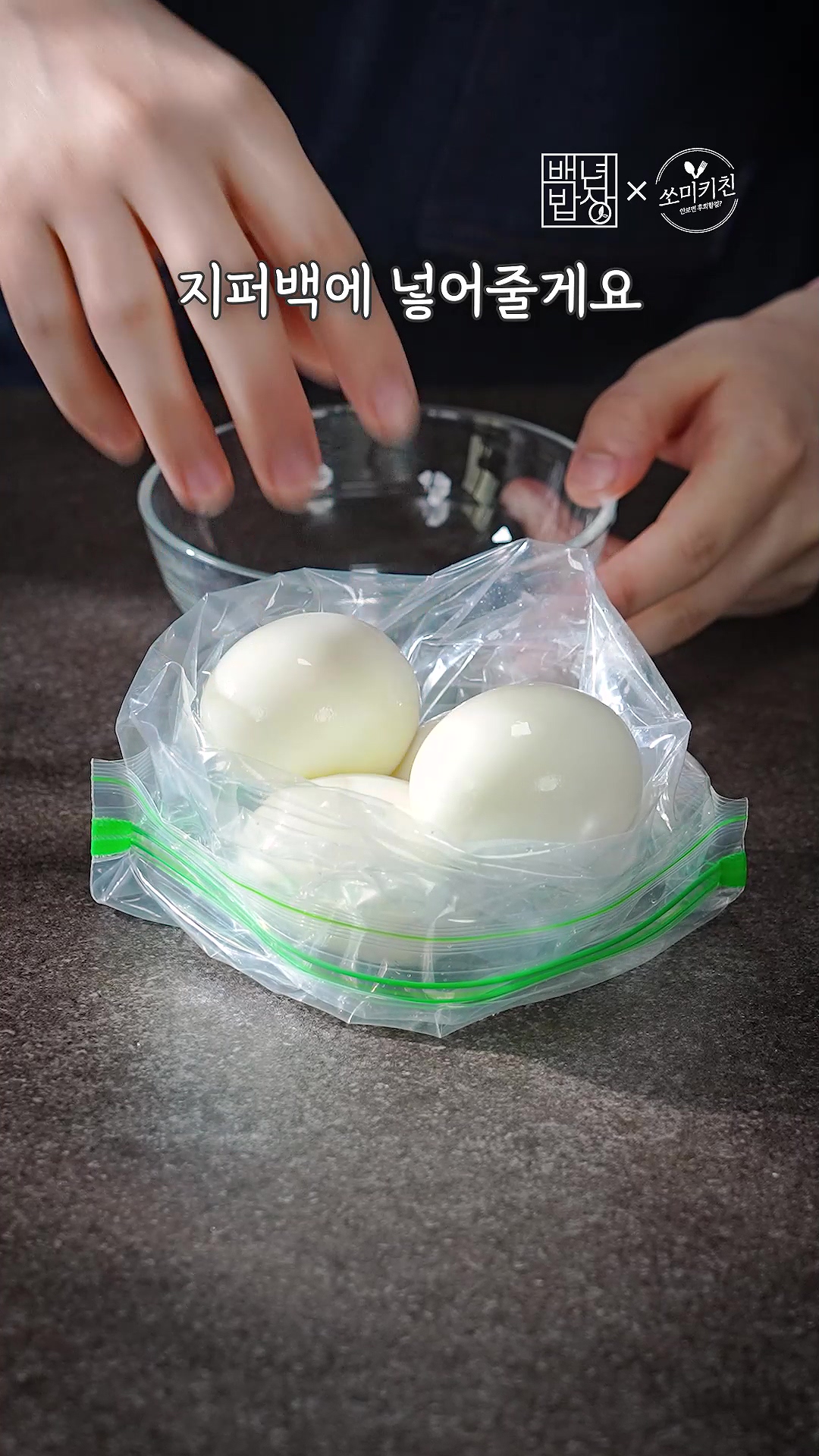 3. 말랑한 계란이 터지지 않게 살살 껍질 까주고 지퍼백에 넣어주세요.
