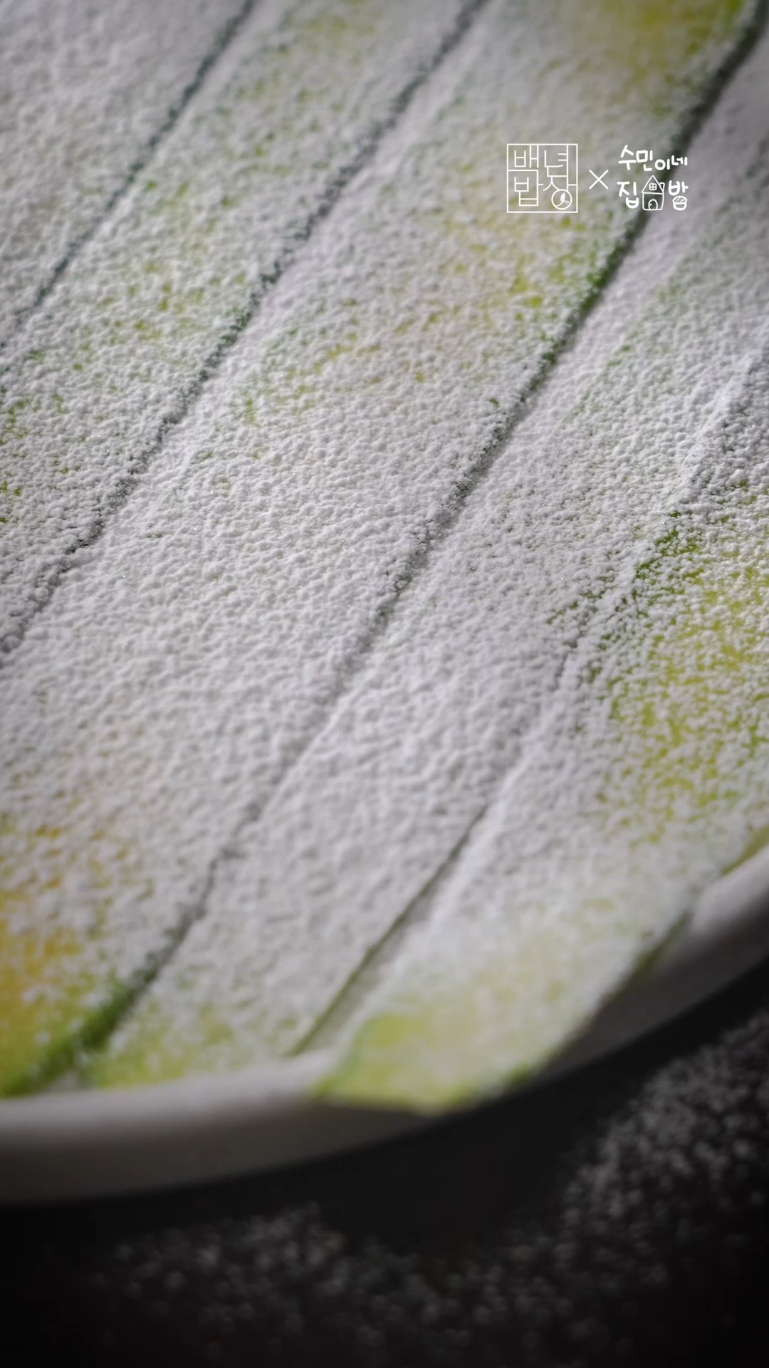 6. 물기를 제거한 애호박에 전분 가루를 뿌려줄게요