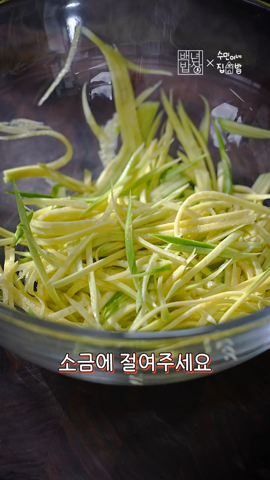 2.남은 애호박은 채 쳐서 소금에 절여주세요