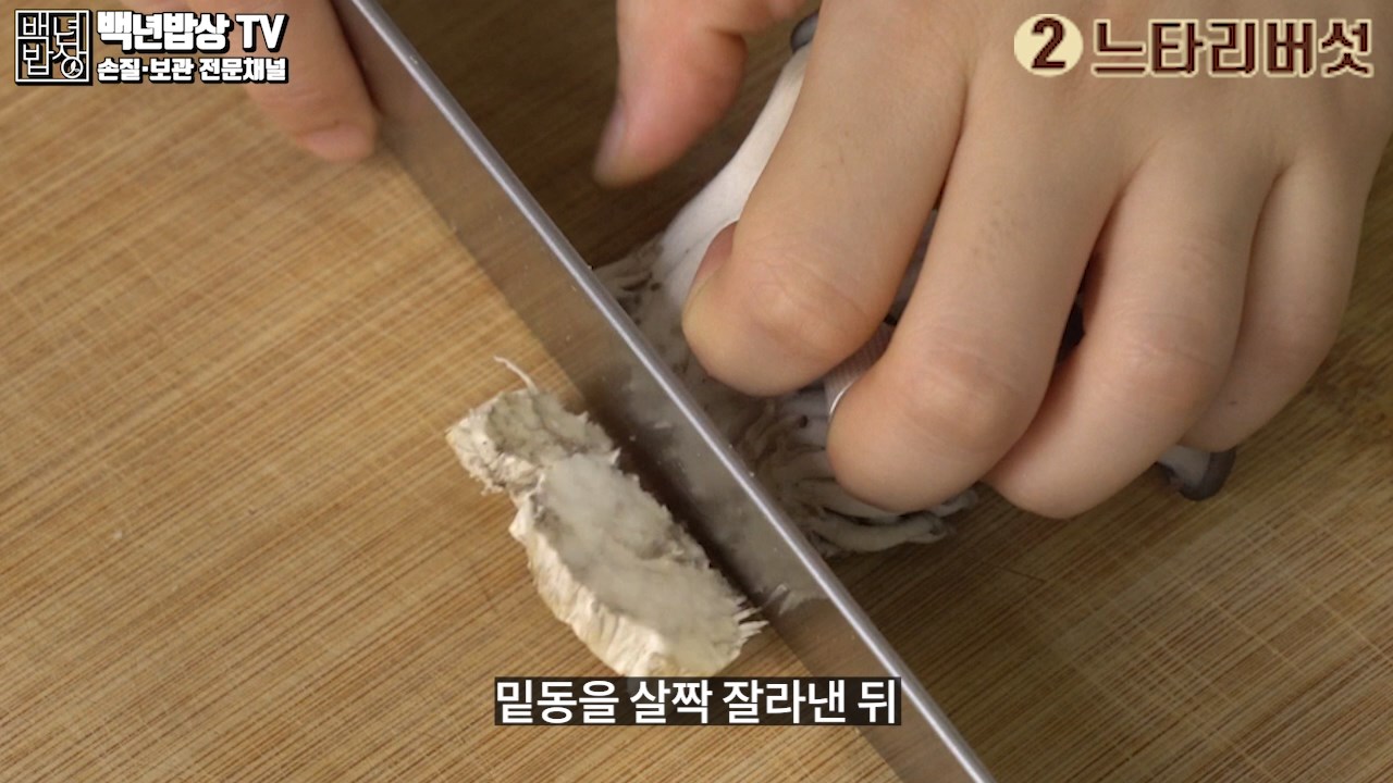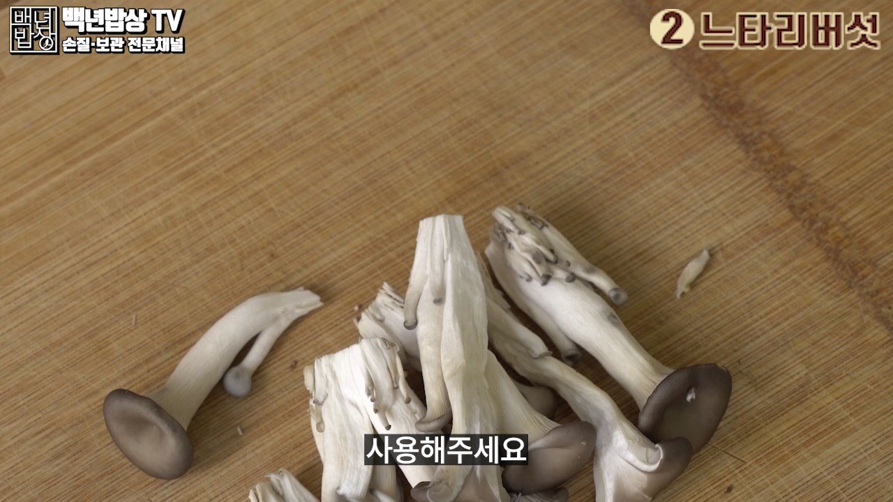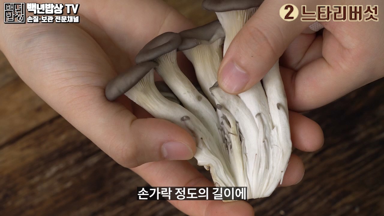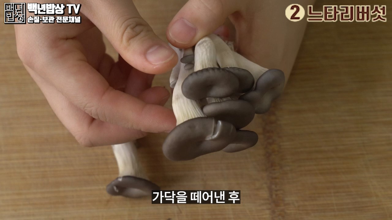 2. 느타리버섯 : 밑동을 살짝 잘라낸 뒤 가닥을 떼어낸 후 두꺼운 가닥은 두께가 균일하도록 손으로 2~3등분으로 찢어 사용해 주세요.