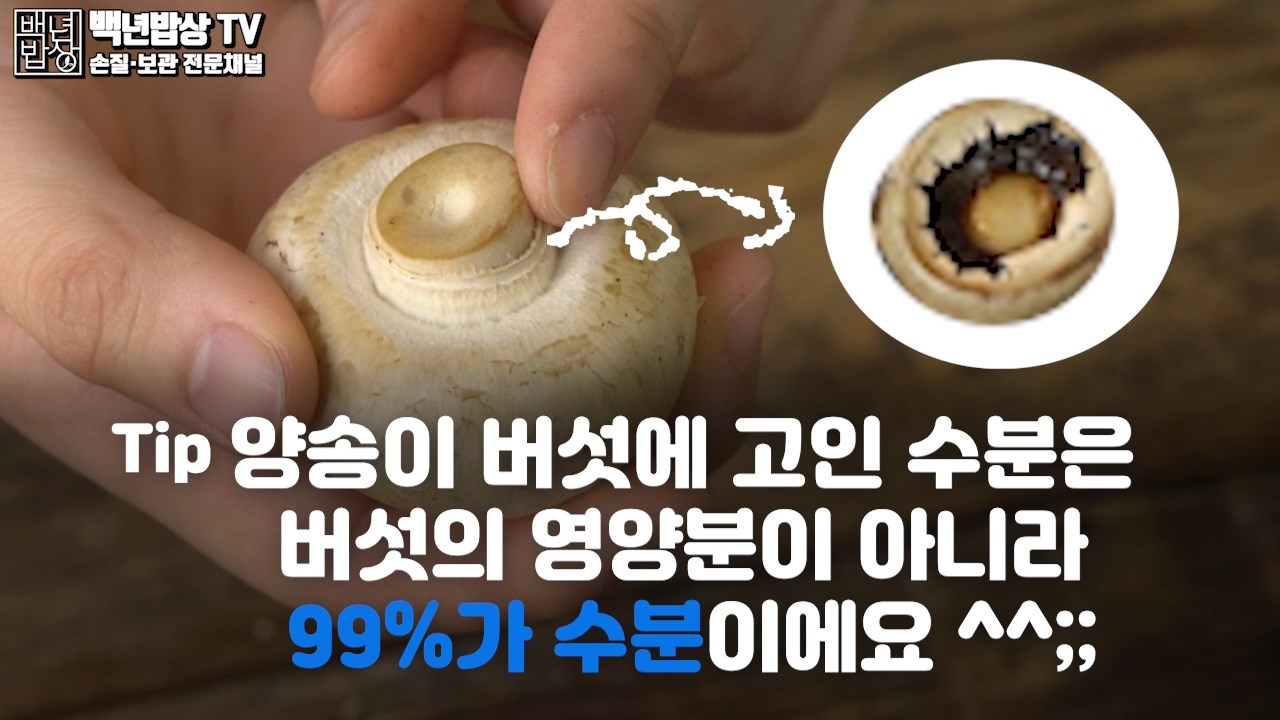 TIP : 양송이버섯에 고인 수분은 버섯의 영양분 아니라 99%가 수분이에요!