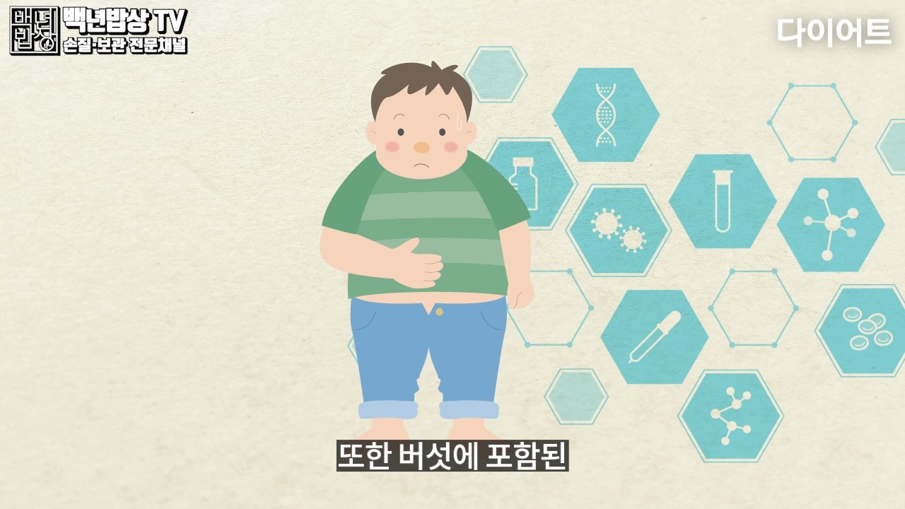 또한 버섯에 포함된 베타글루칸과 키토글루칸이 지방세포를 활성화하여 지방이 연소되는 것을 도와줘요.