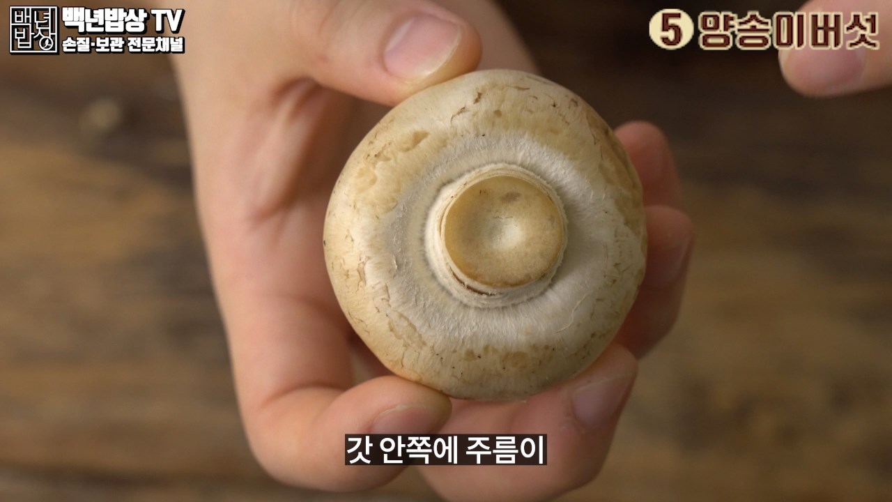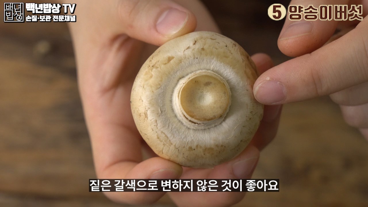 5. 양송이버섯 : 갓과 대가 떨어지지 않고, 갓 안쪽의 주름이 짙은 갈색으로 변하지 않은 것이 좋아요.