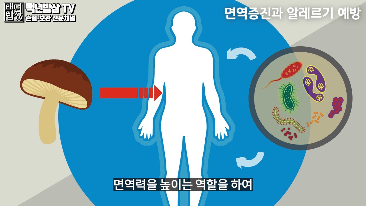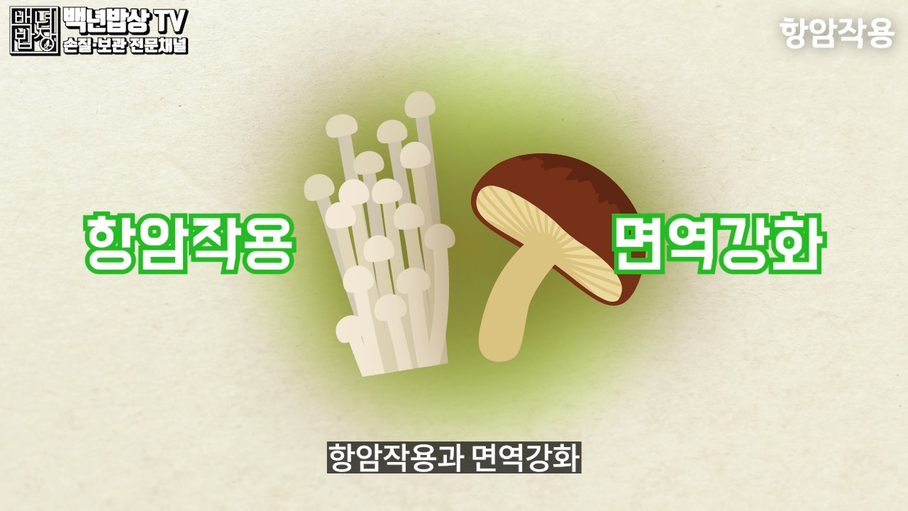 2. 항암작용 : 팽이나 표고에는 항암작용과 면역강화 기능이 풍부한데요. 버섯에 있는 베타글루칸은 내 몸의 나쁜 암세포나 박테리아를 파괴합니다.