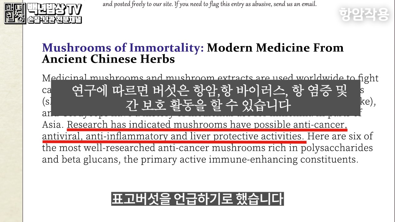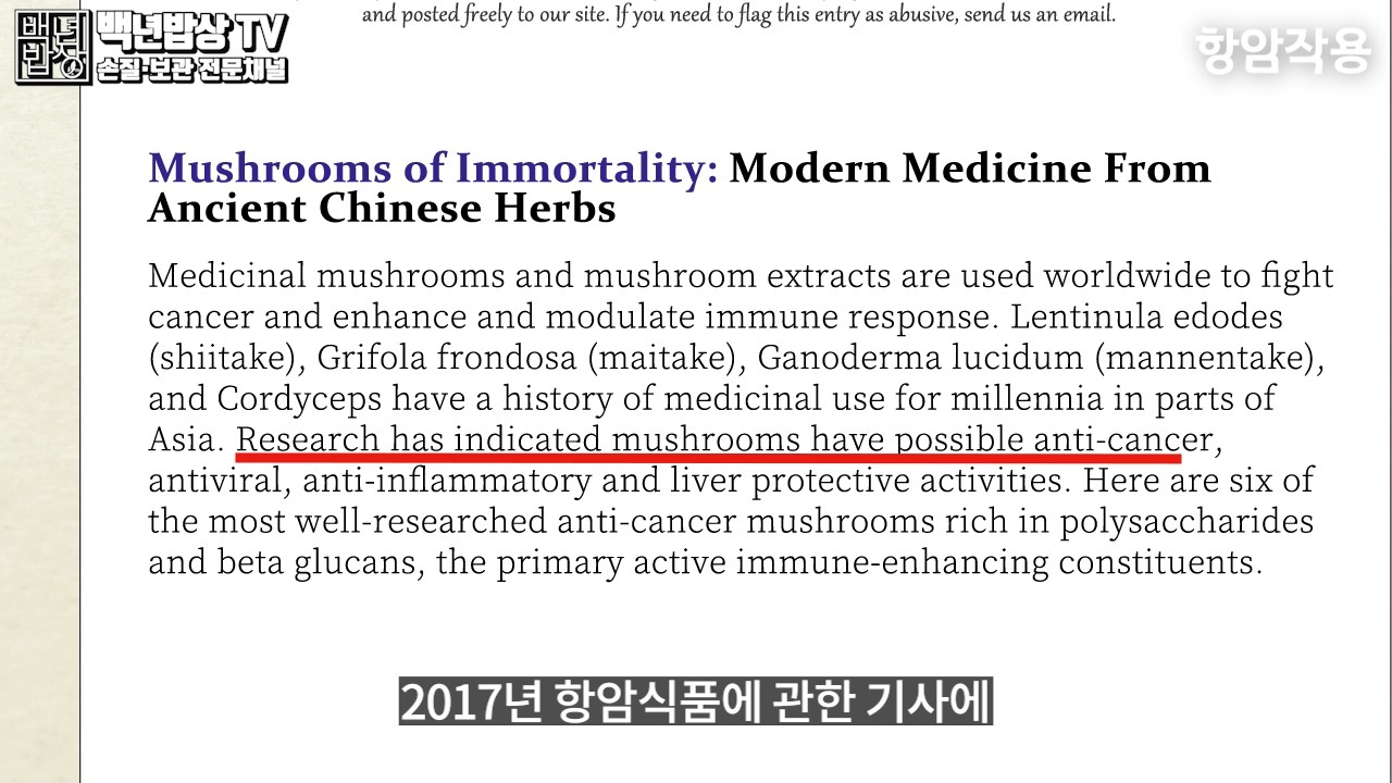 미국의 허핑턴포스트 신문사에서는 2017년 항암식품에 관한 기사에 표고버섯을 언급하기도 했습니다.