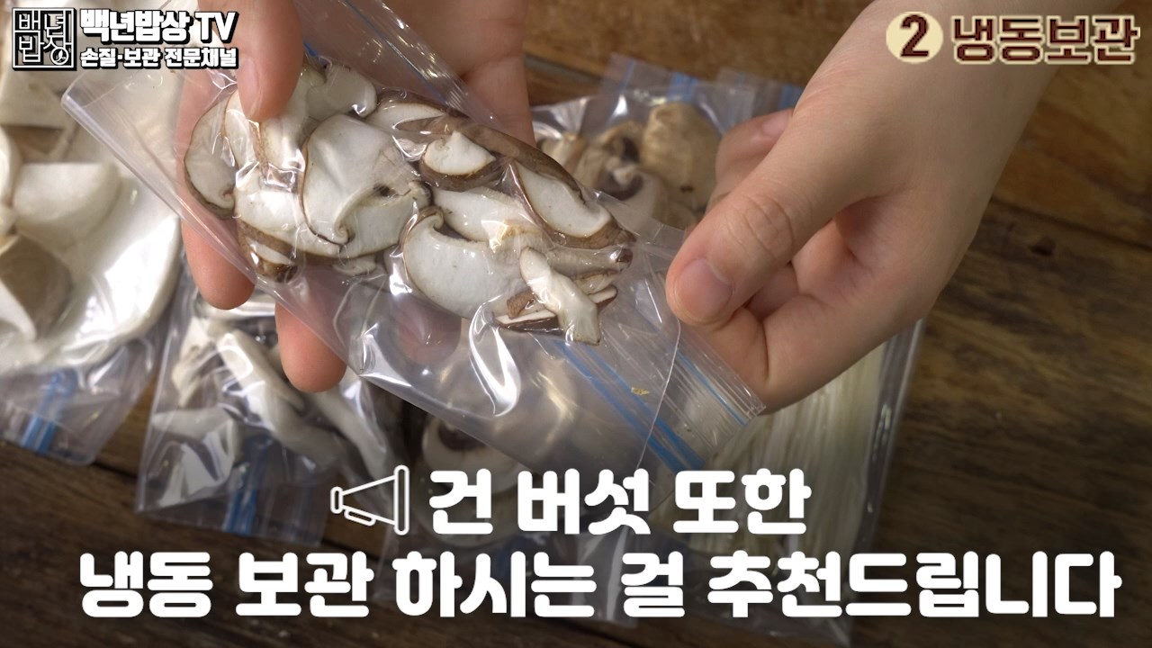 2. 버섯 보관법 (냉동보관) : 버섯을 먹기 좋게 손질해 주세요. 지퍼백에 담고 빨대를 이용해 진공 포장하여 보관해 주시면 됩니다. (약 1년간 보관 할 수 있어요) 건 버섯 또한 냉동 보관하시는 걸 추천드립니다.
