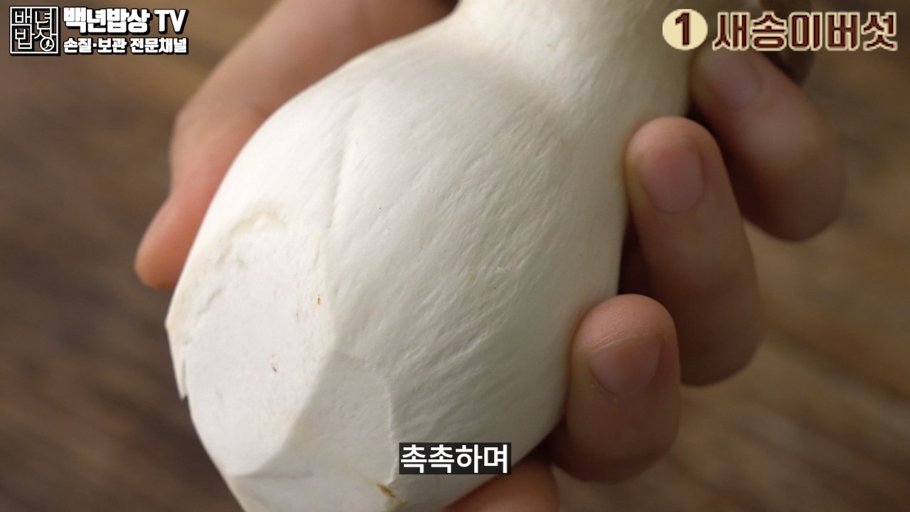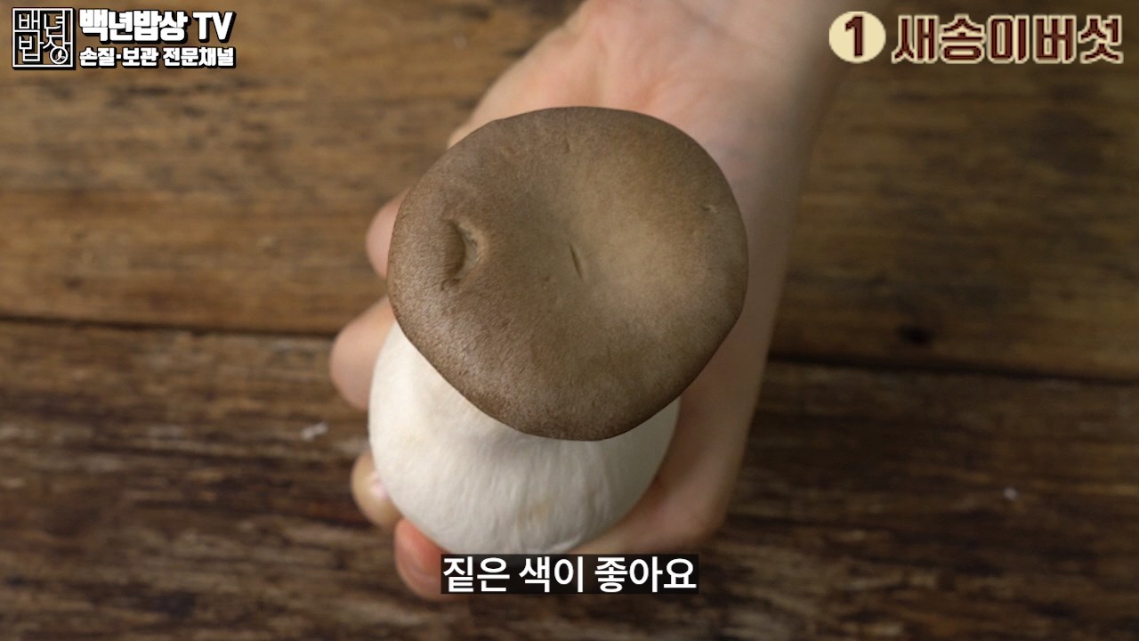 1. 새송이버섯 : 대가 굵고 촉촉하며 갓 부분이 두껍고 짙은 색이 좋아요.