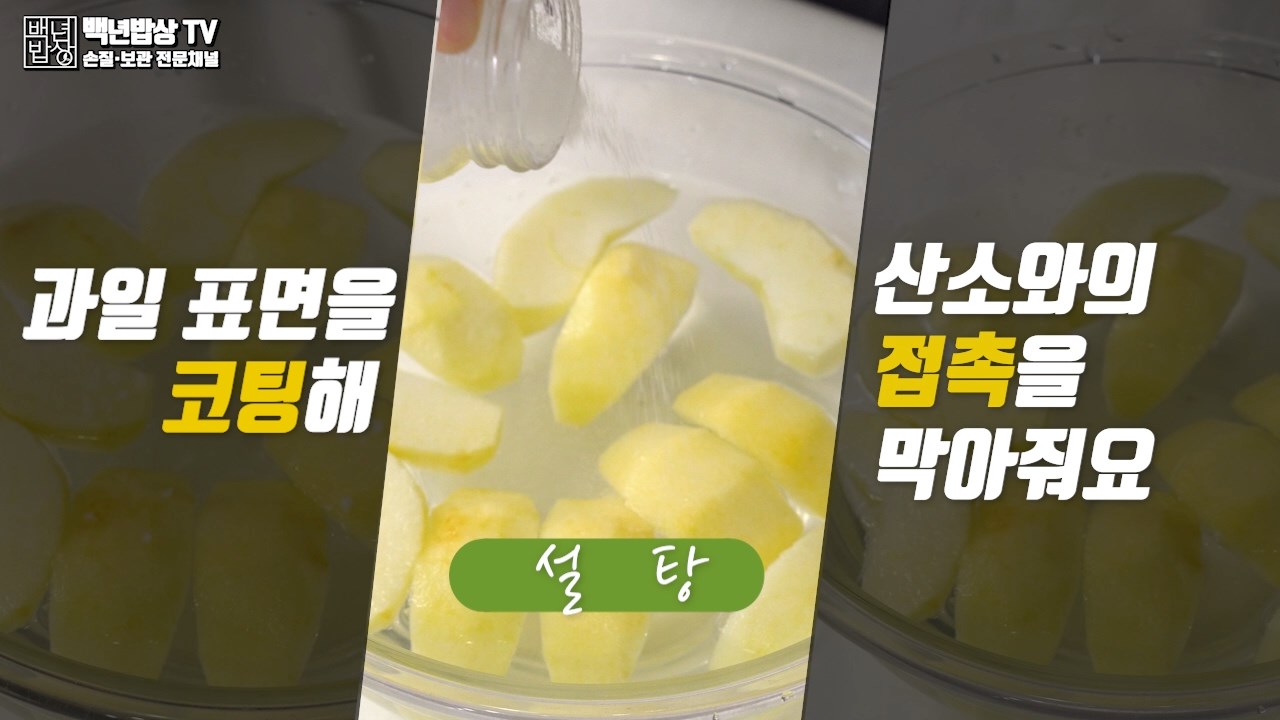2. 설탕물 : 과일 표면을 코팅해 산소와의 접촉을 막아줘요.