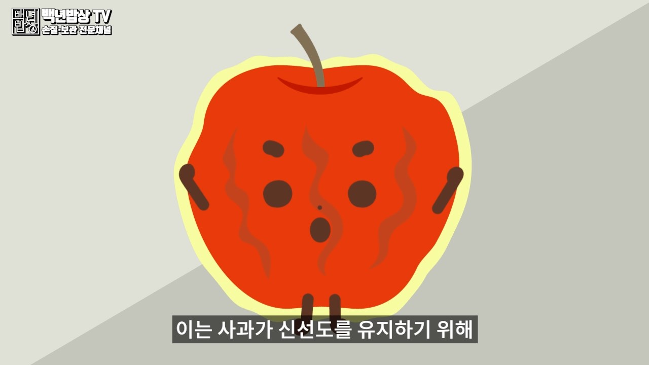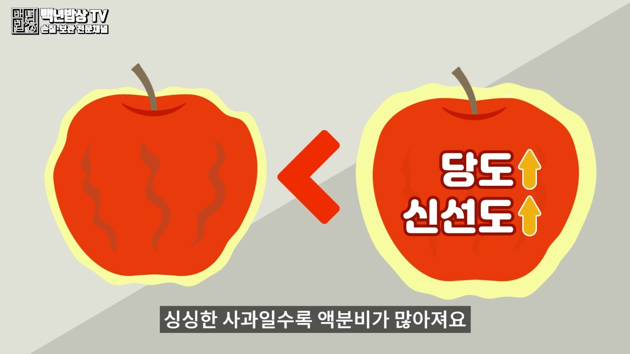 오래된 사과는 껍질이 미끌거리는 왁스현상이 생깁니다. 이는 사과가 신선도를 유지하기 위해 스스로 불포화지방산으로 보호막을 친 것이에요.