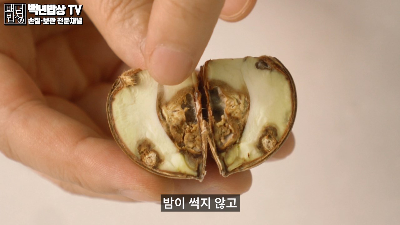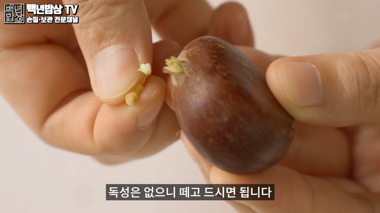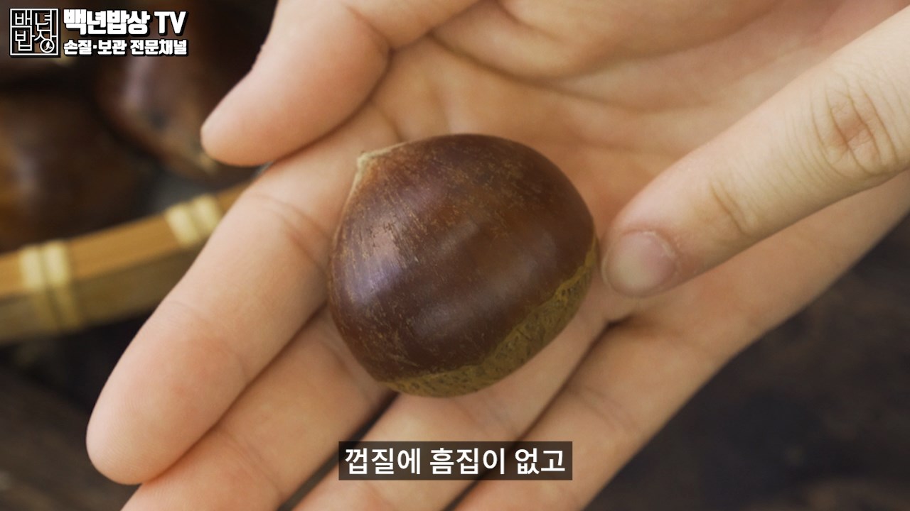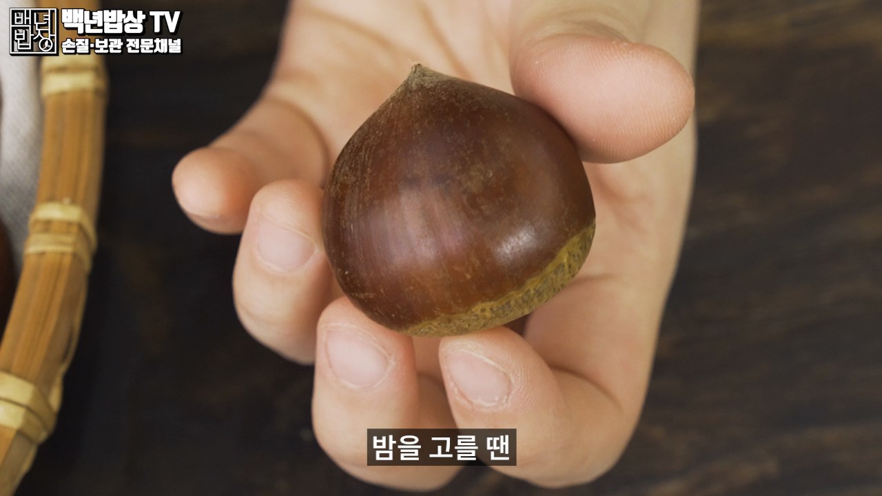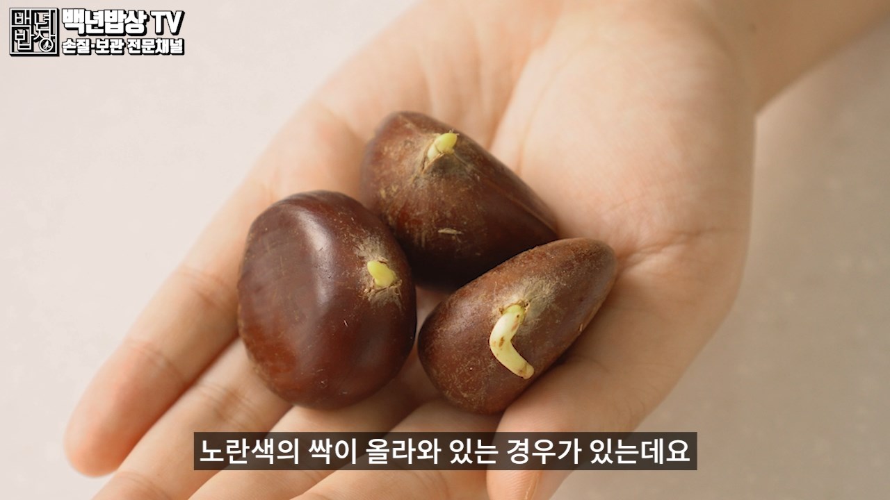 밤을 고를 땐 알이 통통하고 단단한 것으로 골라주세요. 껍질에 흠집이 없고 윤이 나는 밤이 좋은 것이에요. 간혹, 밤 꼭지에 노란색의 싹이 올라와 있는 경우가 있는데요. 독성은 없으니 떼고 드시면 됩니다.