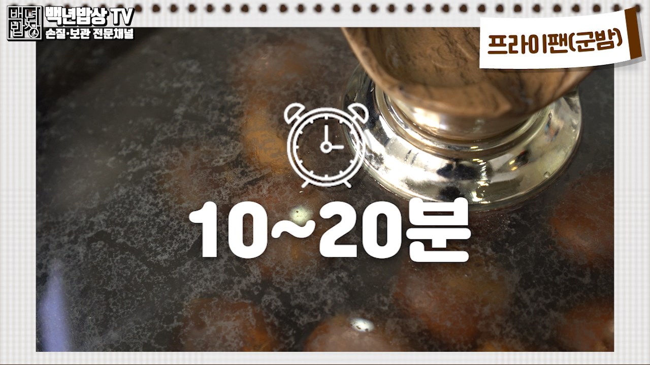 밤을 넣고 뚜껑을 닫아 10~20분간 구워 주세요. 타지 않도록 중간중간 흔들어주시면 됩니다.