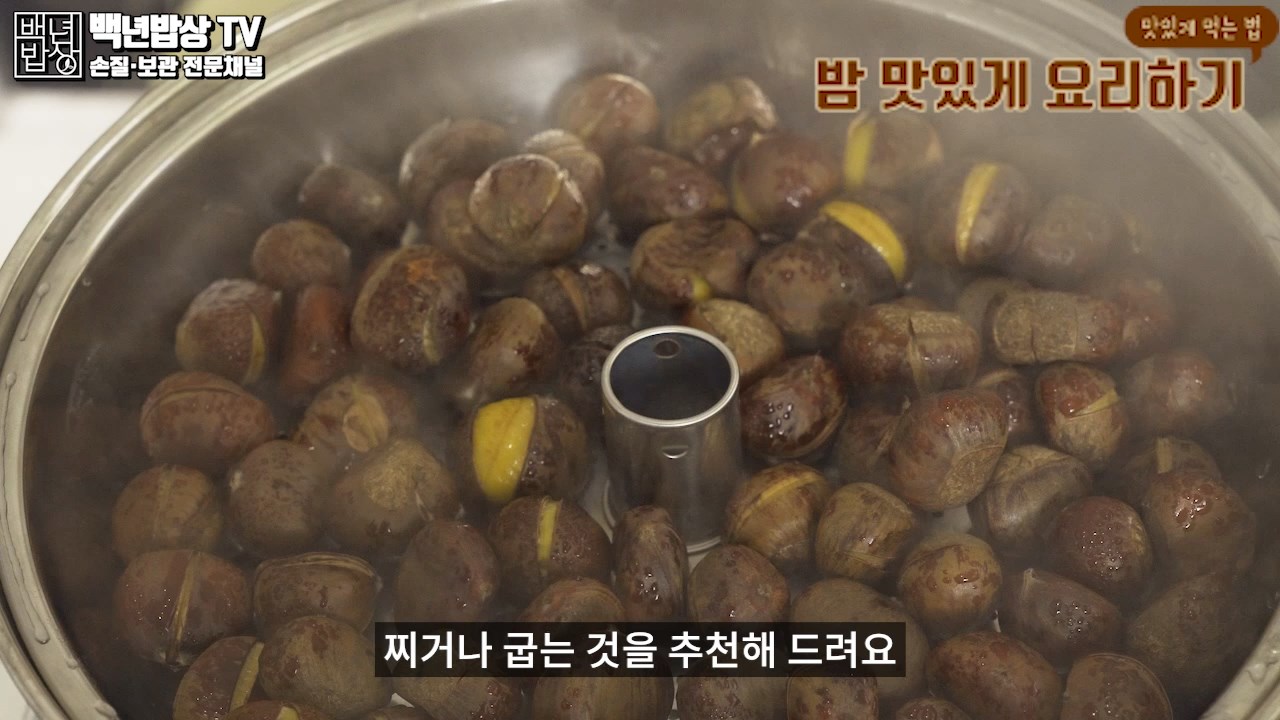 밤은 수용성 비타민이 많기 때문에 삶게 되면 좋은 성분이 모두 빠져나가니 찌거나 굽는 것을 추천해 드려요.