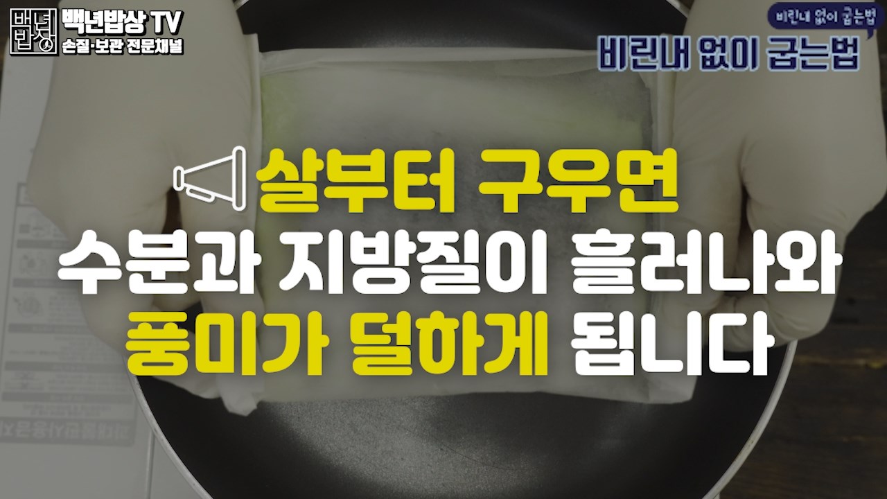 20분 후, 키친타월로 물기를 제거하고 조리해주세요.