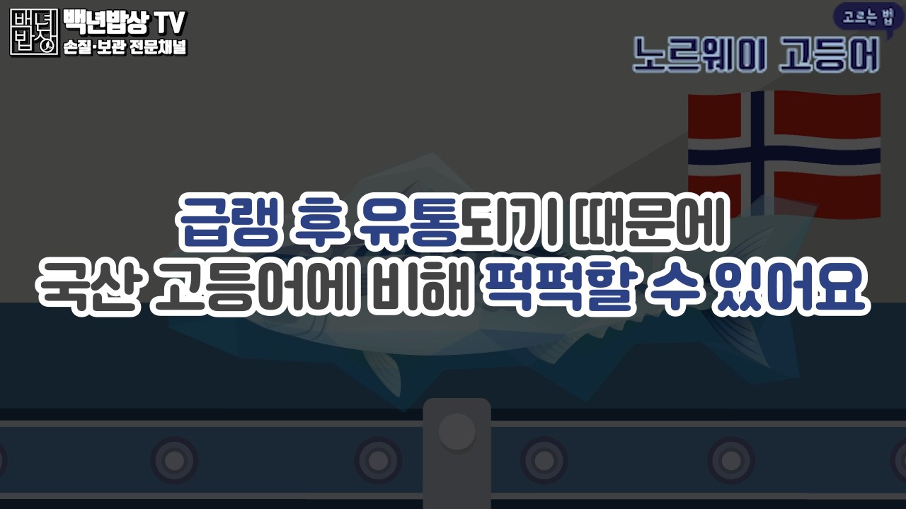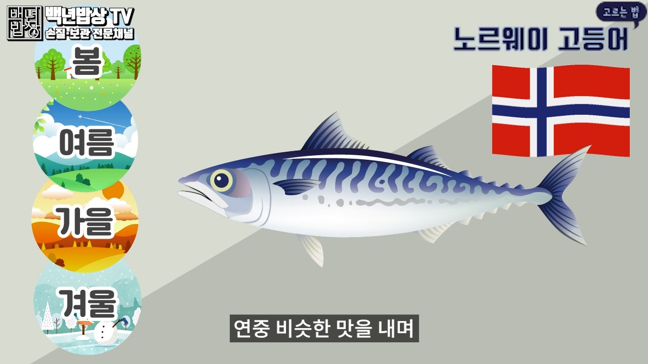 노르웨이산 고등어 - 연중 비슷한 맛을 내며 지방이 많아 맛이 좋아요. 하지만 급랭 후 유통되기 때문에 국산 고등어에 비해 퍽퍽할 수 있어요.