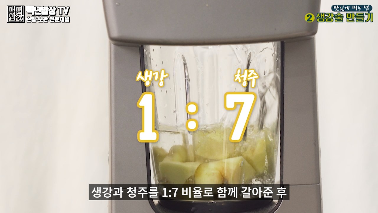 생강과 청주를 1:7 비율로 함께 갈아준 후 유리병에 넣어 냉장 보관해주세요. 생선이나 고기 요리를 할 때 맛술 대신 사용하시면 좋습니다.