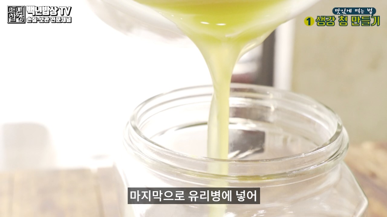 생강청 만드는 법으로, 냄비에 전분 층을 걸러낸 생강즙을 넣고 꿀 이나 설탕을 1:1 비율로 넣어 저어가며 센 불로 끓여주세요. 끓어오르면 약불로 줄여 반 정도 졸여지면 식혀주세요.