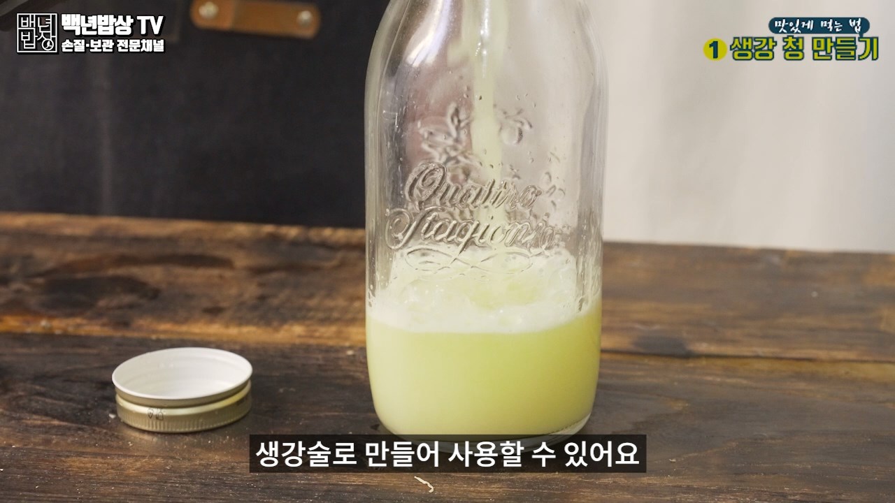 마지막으로 유리병에 넣어 냉장 보관해주세요. 남은 건더기는 얼음 틀에 얼리거나, 생강술로 만들어 사용할 수 있어요.