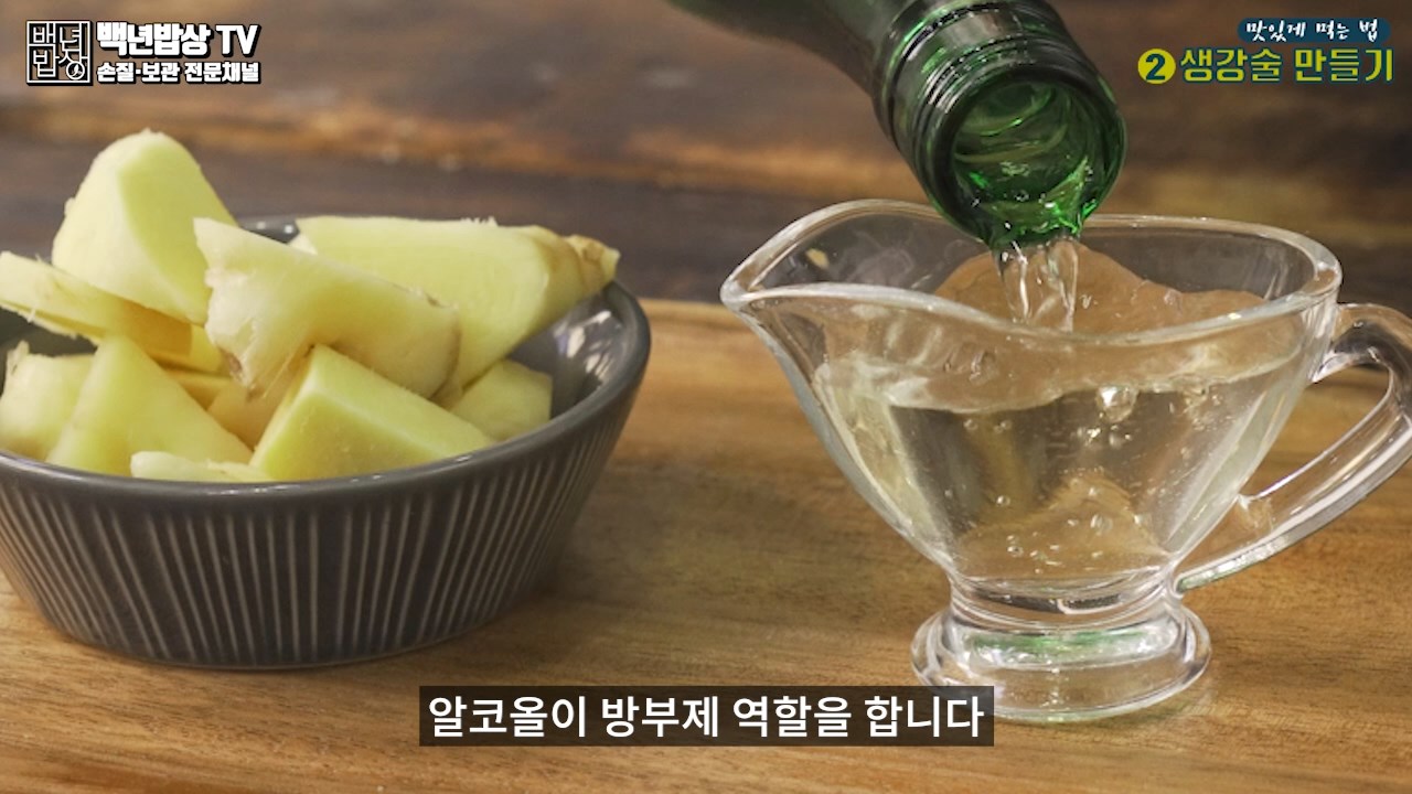 2. 생강술 만들기 : 생강과 술을 섞어 보관하면 알코올이 방부제 역할을 합니다. 그래서 냉장 보관해도 1년 내내 상하지 않아요.