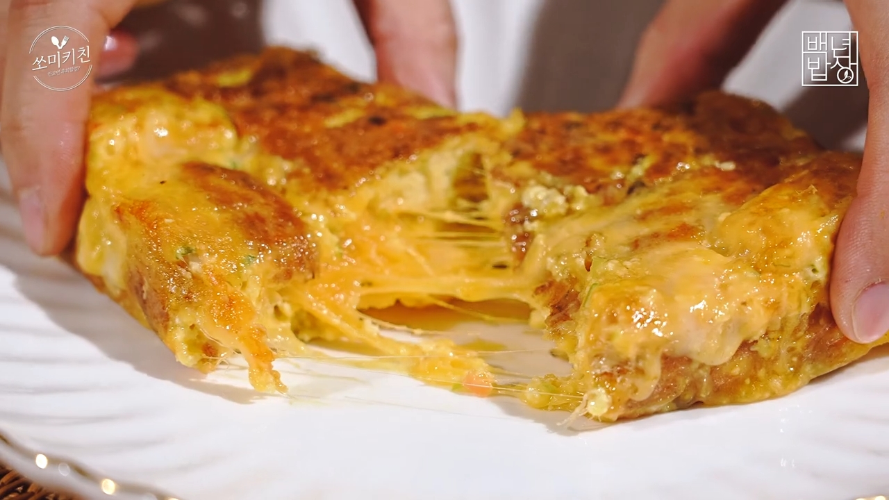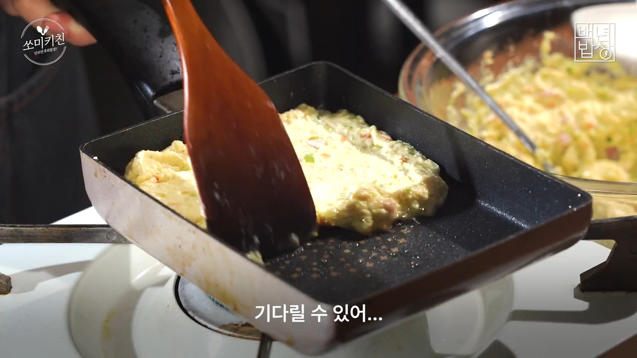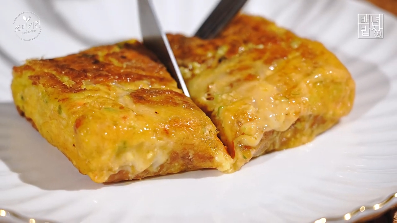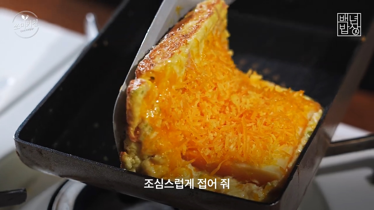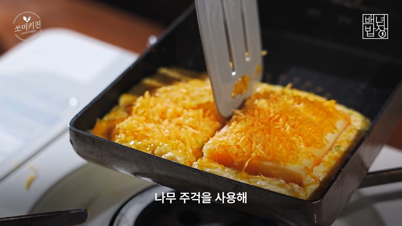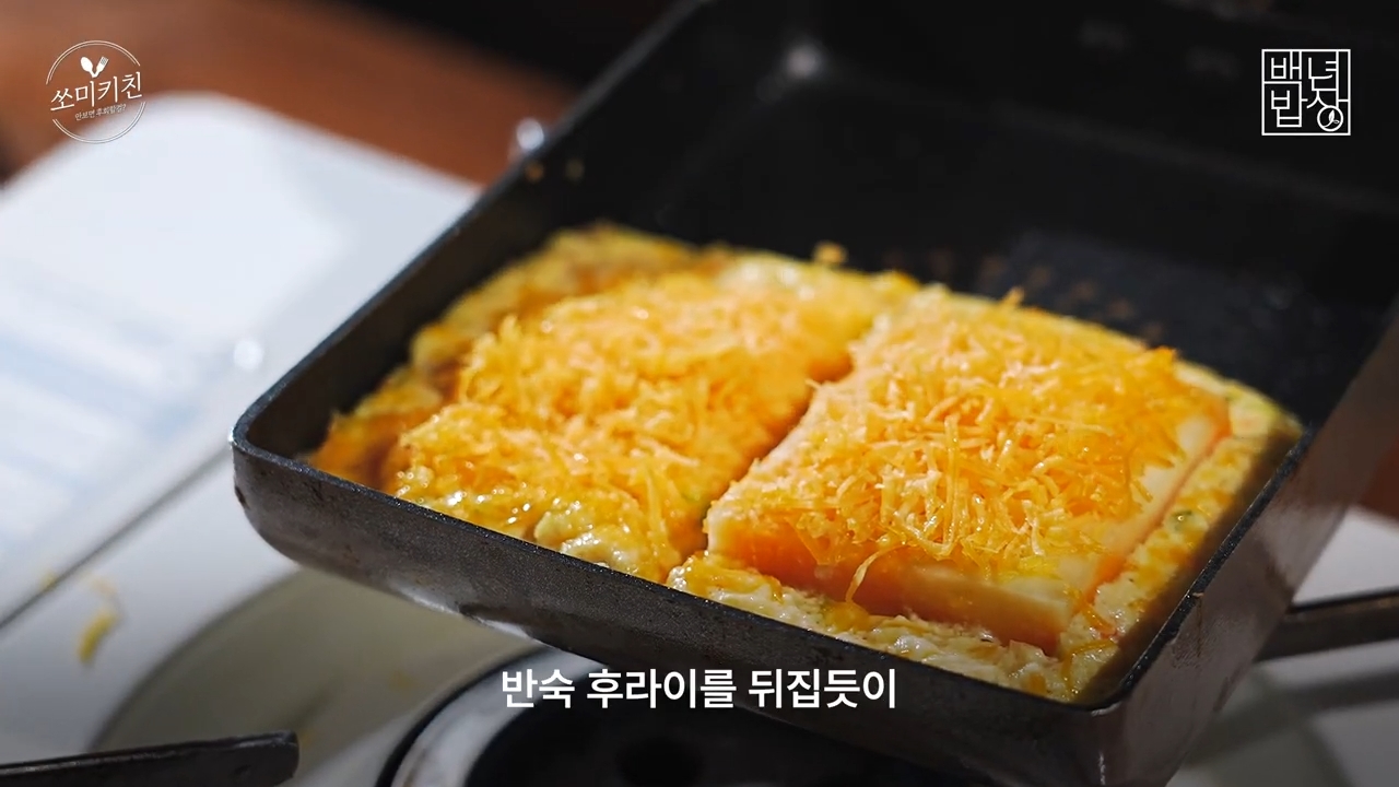 그리고 겉을 살짝 익혀 준 다음에 뒤집는 게 가장 중요한 포인트 입니다!