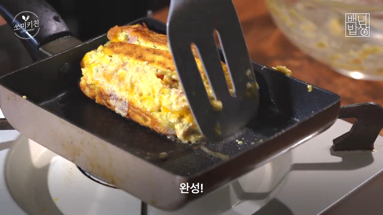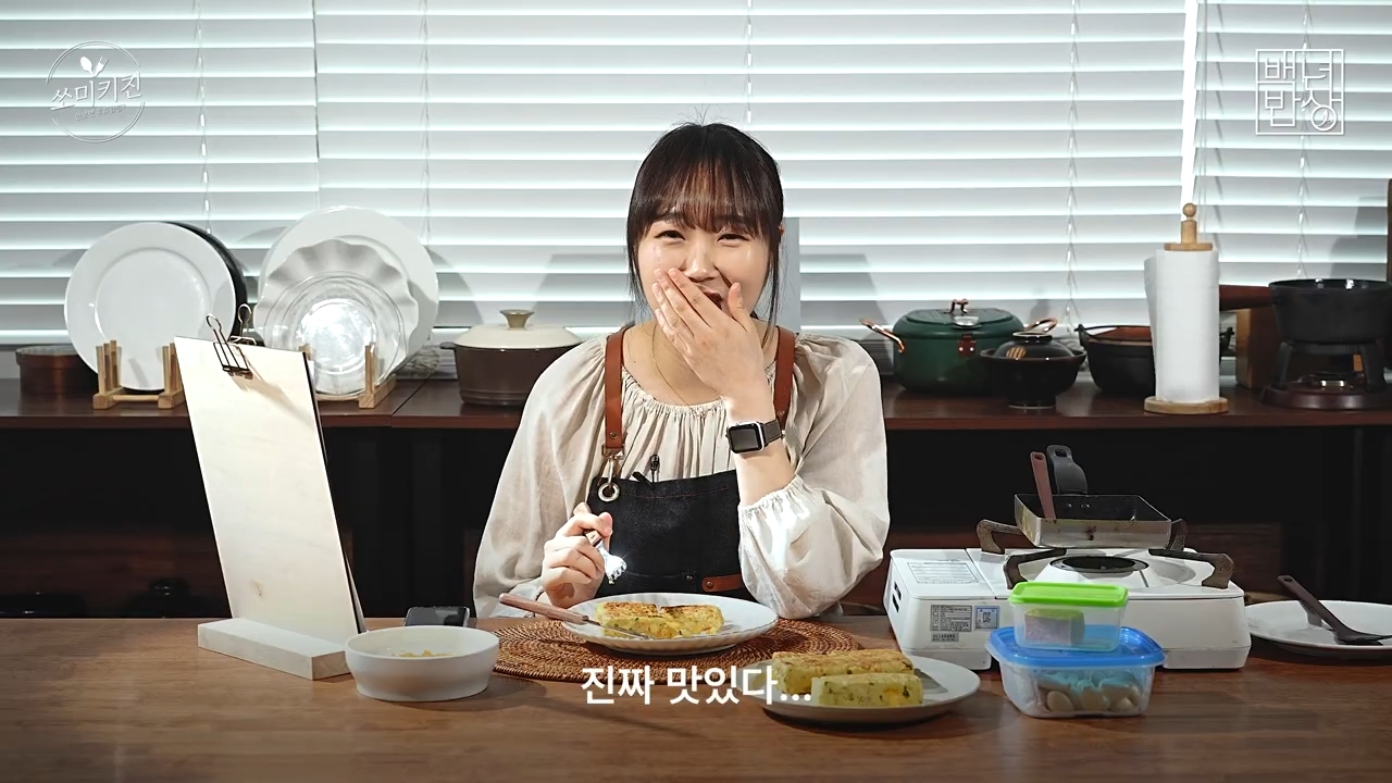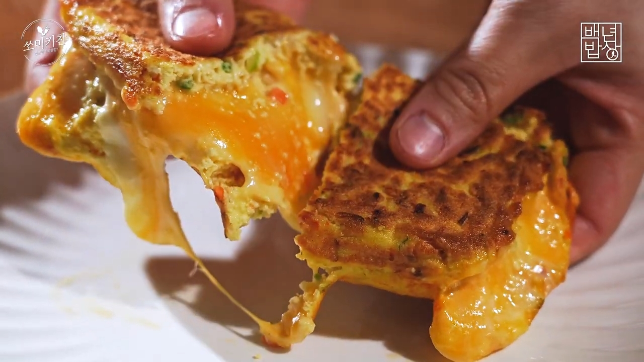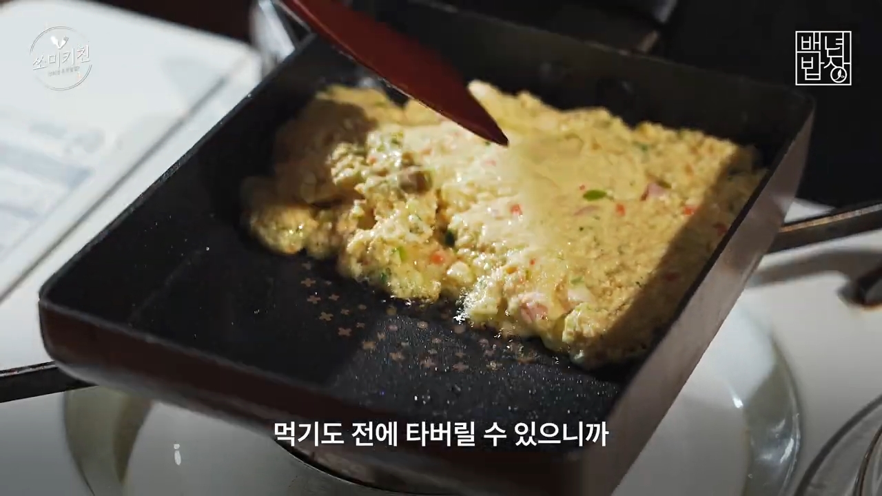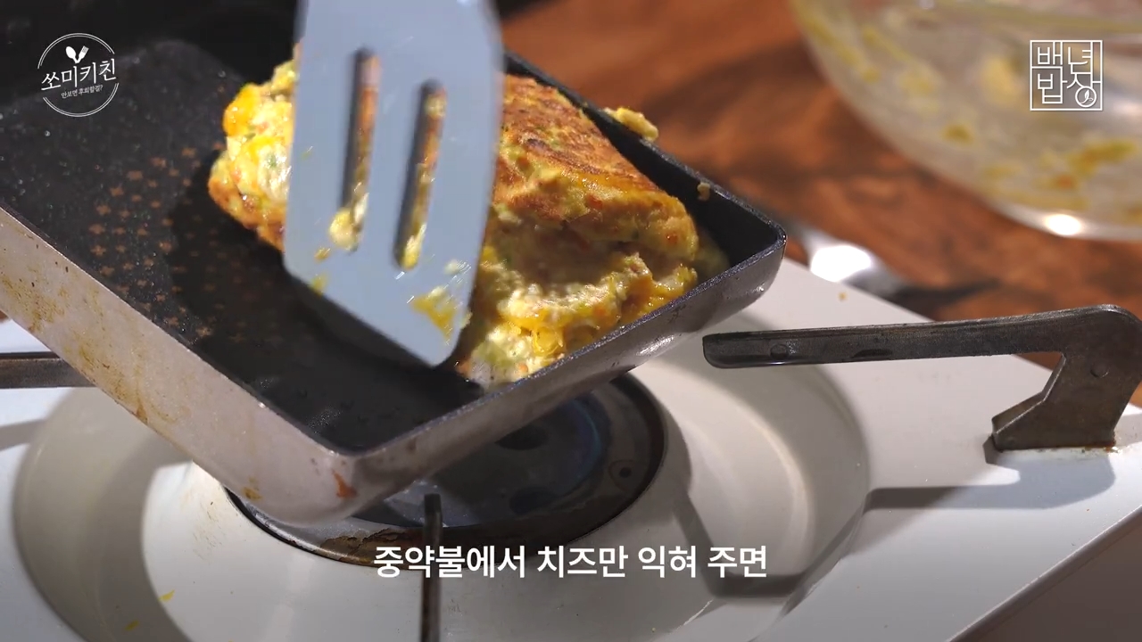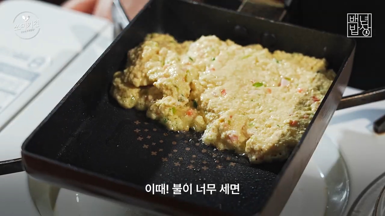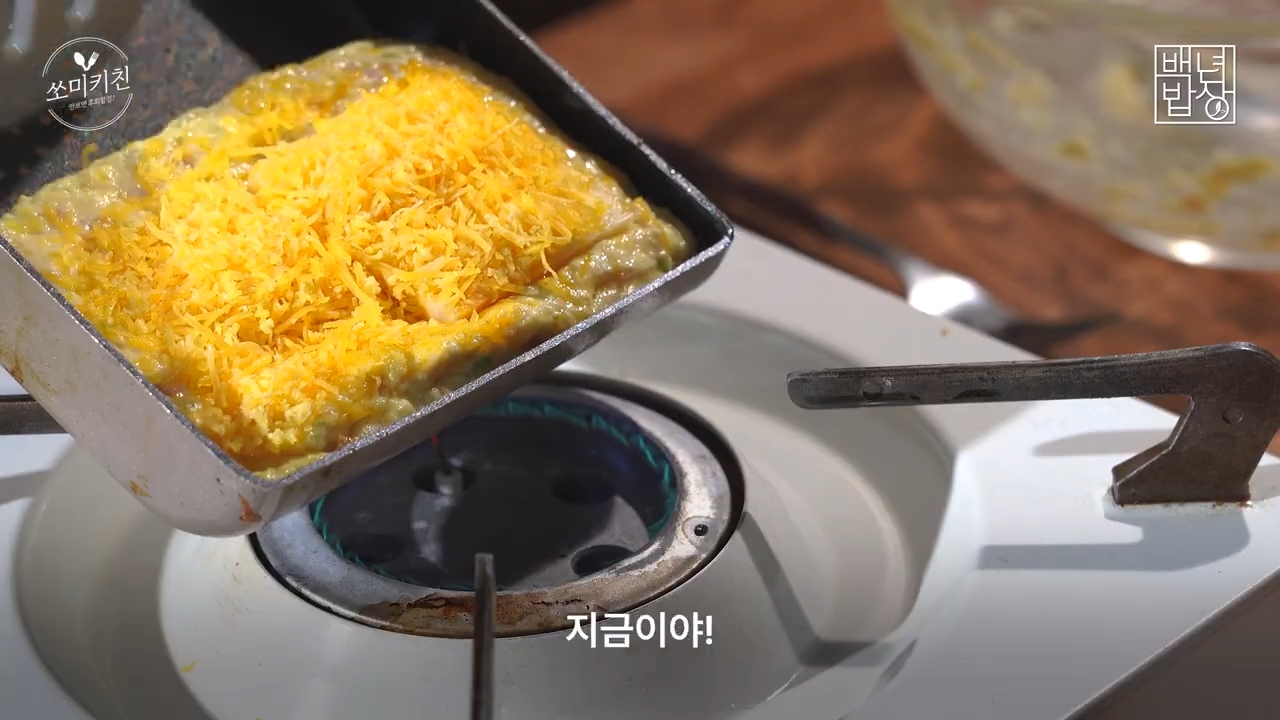 그리고 겉을 살짝 익혀 준 다음에 뒤집는 게 가장 중요한 포인트 입니다!