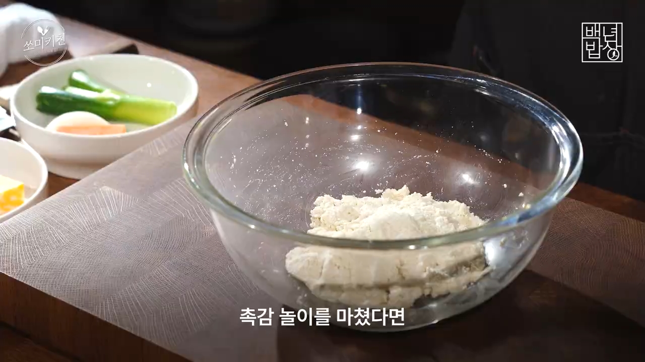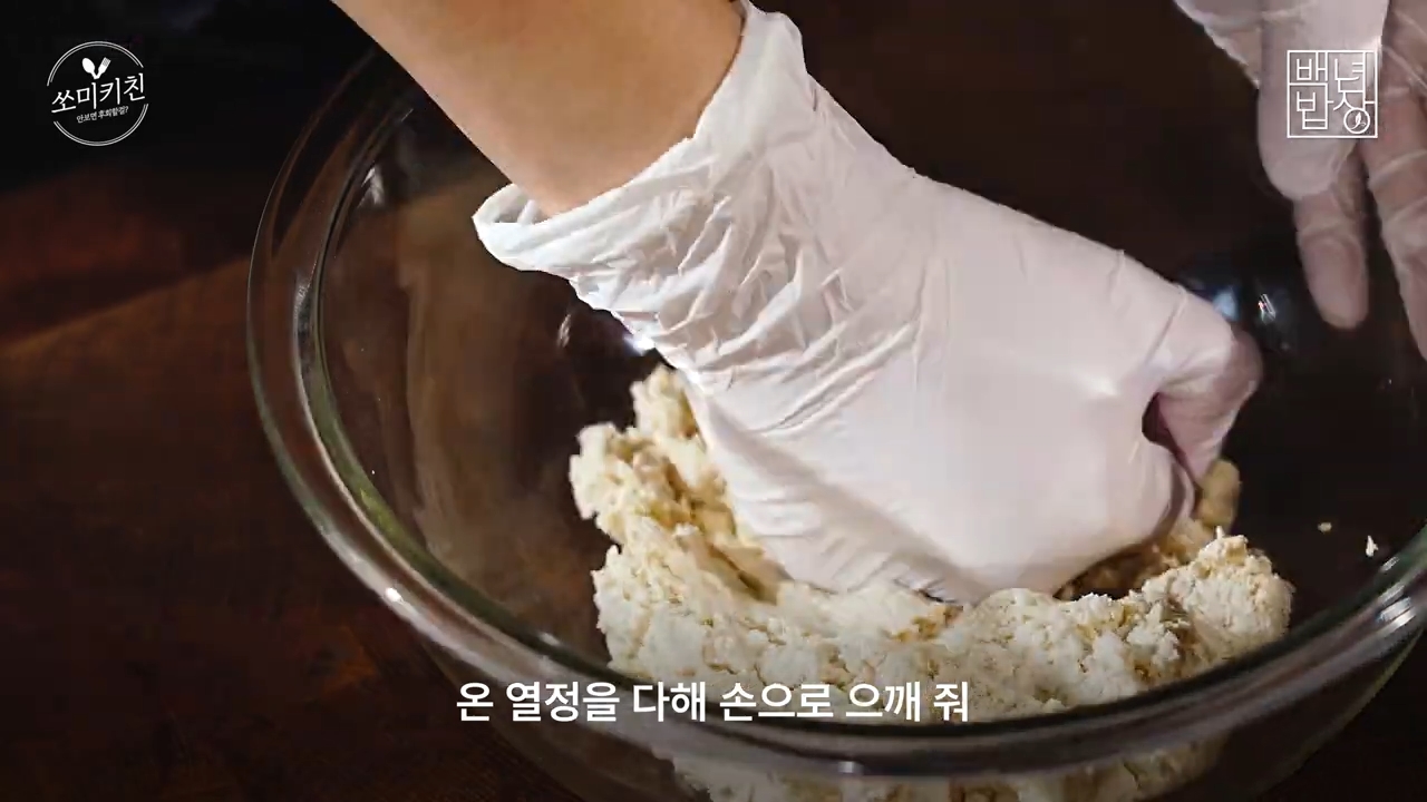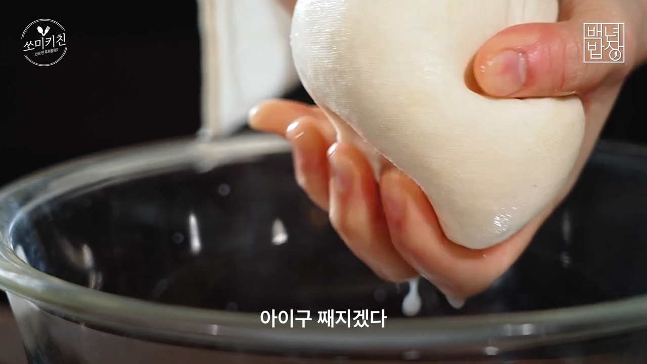 두부에 물기가 많으면 반죽이 잘 갈라져서 찢어질 수 있는 확률이 되게 높아져요.