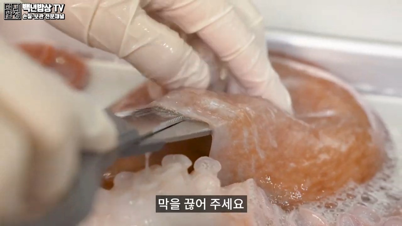 또한 문어 다리 안쪽에 있는 막을 제거하면 식감이 더 부드러워집니다.