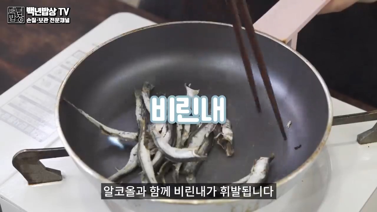 기름 없이 중불로 덖어주시면 알코올과 함께 비린내가 휘발됩니다.