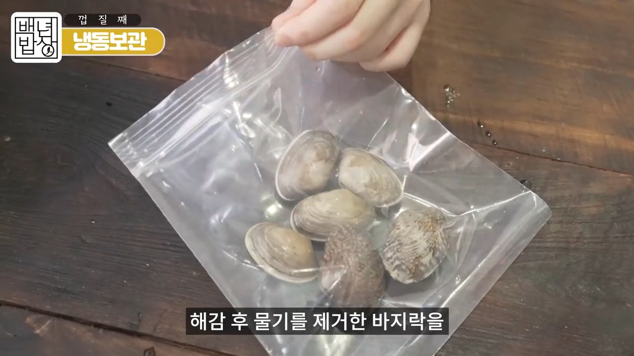 해감 후 물기를 제거한 바지락을 지퍼백에 담고 진공포장한 후 냉동 보관하시면 됩니다.