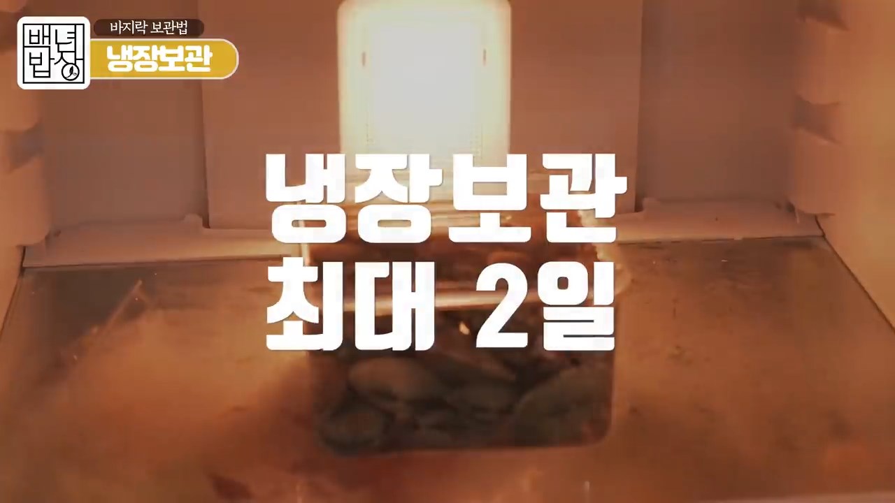 바지락이 질식할 수도 있으니 뚜껑은 닫지 않고 열어둔 상태 그대로 냉장 보관해주시면 됩니다.