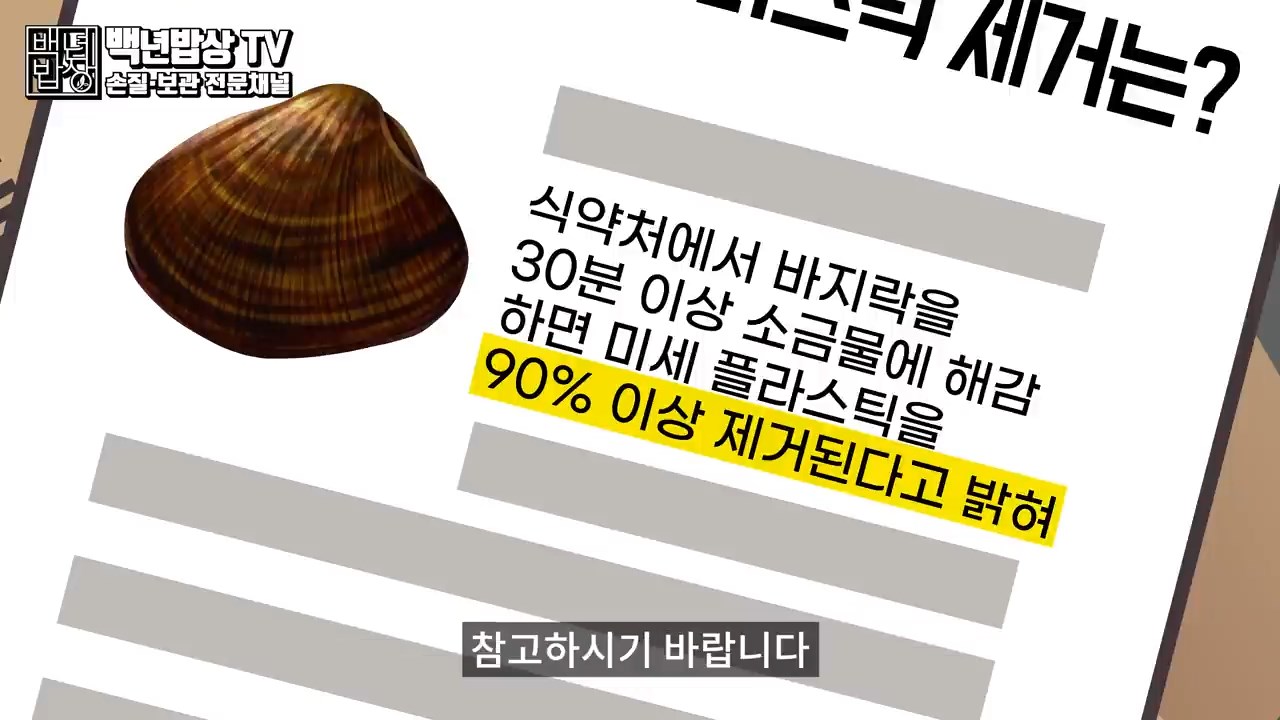 식약처에 따르면 바지락의 경우 30분 이상 소금물에 해감한다면 미세 플라스틱을 90% 이상 제거할 수 있다고 하니 참고하시기 바랍니다.