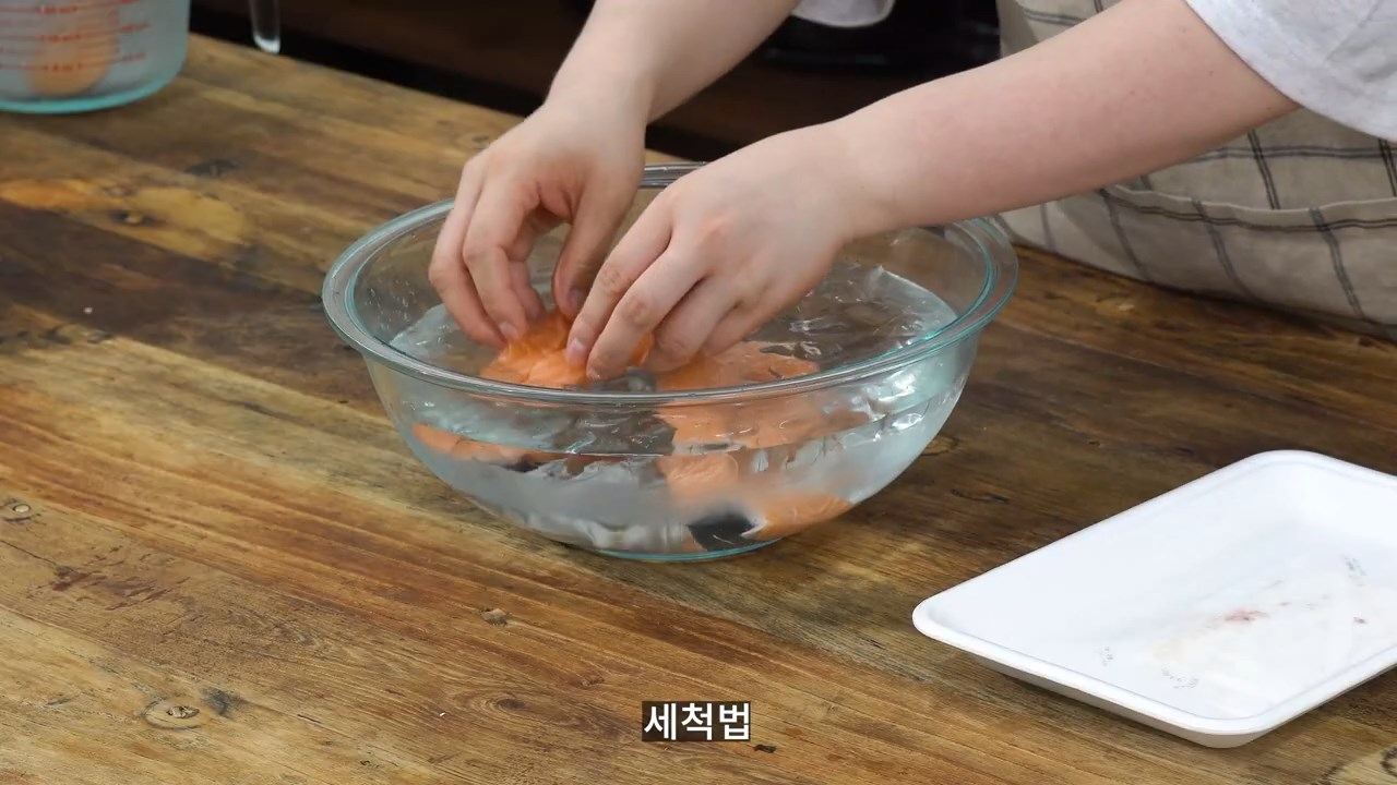 소금과 얼음물을 활용하면 비린내 제거와 함께 탱탱한 식감을 살릴 수 있습니다.