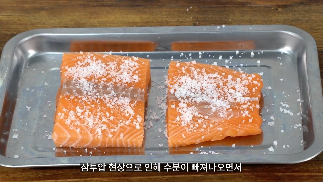 삼투압 현상으로 인해 수분이 빠져나오면서 연어의 살이 더욱 단단해집니다.