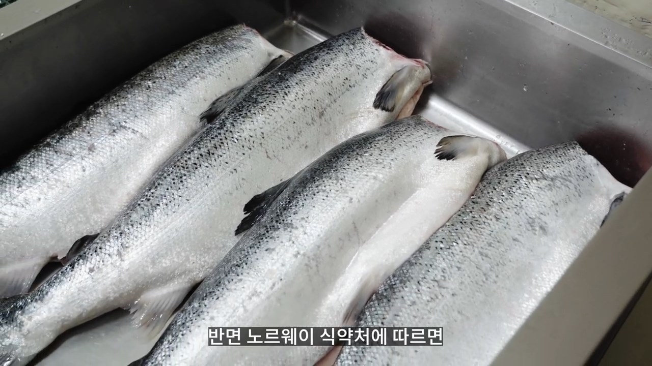반면 노르웨이 식약처에 따르면 양식 연어의 경우 멸균 처리된 사료를 먹고 자라기 때문에